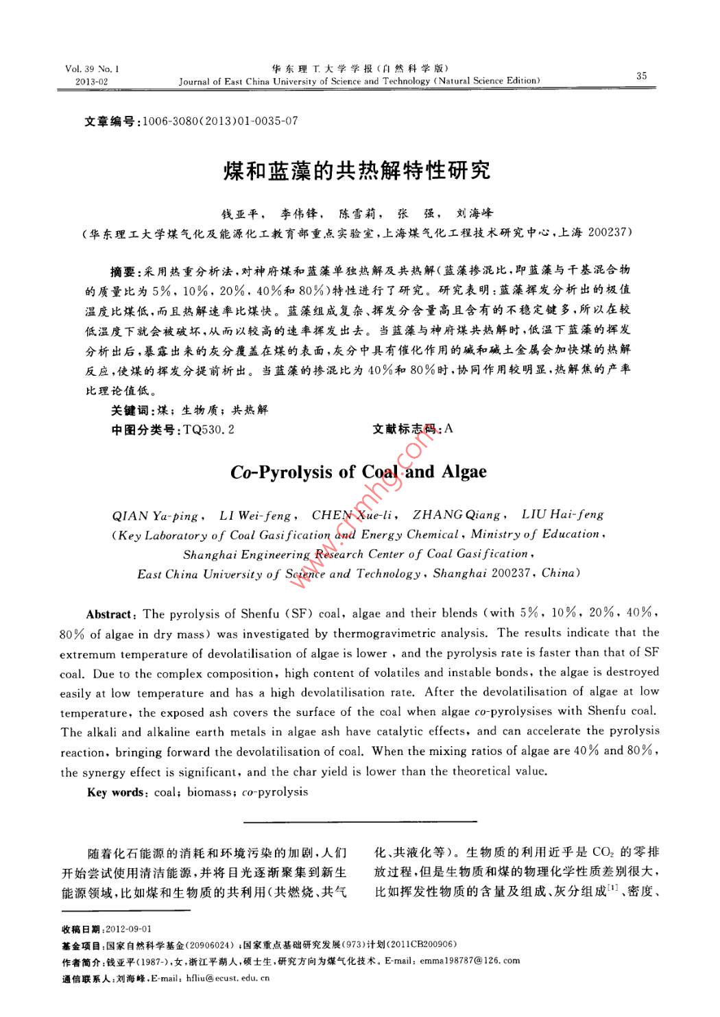 - 作者單位:華東理工大學(xué)煤氣化及能源化工教育部重點(diǎn)實(shí)驗(yàn)室