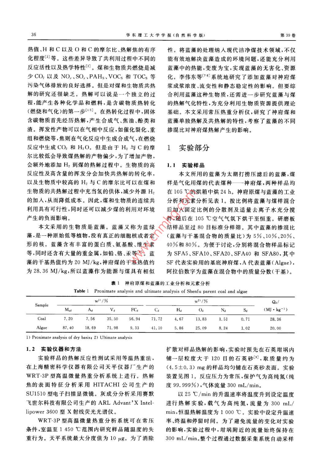 煤和藍(lán)藻的共熱解特性研究