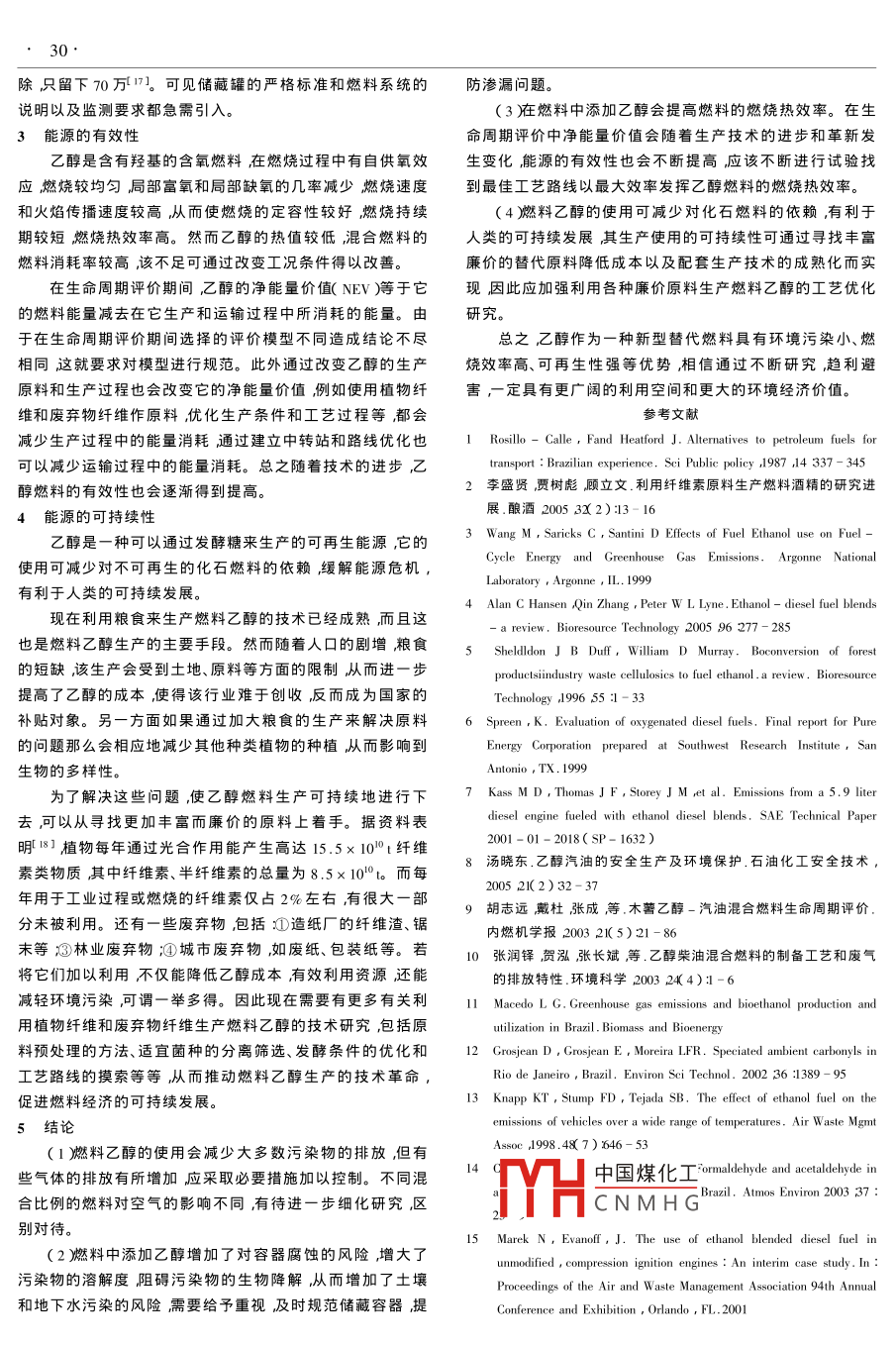 業(yè)安全與環(huán)保006年第32卷第10期Industrial Safety and Environmental ProtectionOctober 2006環(huán)境工程燃料乙醇應(yīng)用對環(huán)境的影響王艷坤1張建強(qiáng)1孟祥明21.西南交通大學(xué)環(huán)境科學(xué)與工程學(xué)院成都610031;2天津大學(xué)環(huán)境科學(xué)與工程學(xué)院天津300072摘要燃料乙醇作為可再生的替代能源被越來越廣泛地利用。從對空氣的彯響、對土堰和地下水的潛在影響、能源的有效性和能源的可持續(xù)性4個(gè)方面闡述了燃料乙醇使用對環(huán)境的影響效應(yīng),既說眀了其顯著的優(yōu)勢漢提岀了存在的問題及相關(guān)建議,旨在更充分地發(fā)揮燃料乙醇的能源價(jià)值關(guān)鍵詞燃料乙醇環(huán)境能源Effect of Fuel ethanol on EnvironmentWANG Yan-kun ZHANG Jian-qiang MENG Xiang-ming?(1. School of Environmental Science and Engineering Southwest Jiaotong University Chengdu 610031)Abstract As the renewable energy ethanol is used more and more widely. In order to use it effectively the influence of ethanol onenvironment is explained from several aspects such as effects on air potential effects on soil and underwater effectiveness of energy and theustainability of energy. Its obvious advantages are expounded and the existed problems and suggestions are put forward aiming at giving fullplay to energy valueKeywords ethanol fuel environment energy隨著世界人口的增加和更多國家的工業(yè)化能源消費(fèi)穩(wěn)耗45.4億L約占汽油總消耗量的1%3。同年,美國政府步增加而作為主要能源旳石油則日益匱乏這種能源的供提岀到α010年生物燃料在全美能源中所占比重要提高需矛盾必然影響到經(jīng)濟(jì)的發(fā)展和社會的安定因此世界各國倍達(dá)到20%的發(fā)展目標(biāo)。與此同時(shí),瑞典和法國亦以小麥紛紛展開新的替代能源的硏究與開發(fā)其中以燃料乙醇最為等為原料生產(chǎn)燃料乙醇添加到汽油和柴油中應(yīng)用。歐盟也采取了相關(guān)措施促進(jìn)生物燃料使用,計(jì)劃到2005年生物燃20世紀(jì)30年代巴西首先開始大范圍使用乙醇-汽油混料作為交通運(yùn)輸燃料至少占市場份額的2%到2010年末至合燃料口在汽油中摻入2%的乙醇或全部代替汽油。1999少占5.75%到2020年生物質(zhì)乙醇能源在總能源結(jié)構(gòu)中所年巴西乙醇產(chǎn)量達(dá)近130億L除少量出口外其余全部自占比例將提高到8%4。加拿大也將這種混合燃料列入本用1。20世紀(jì)70年代,世界石油危機(jī)后10%乙醇與無鉛汽國的環(huán)境保護(hù)計(jì)劃 Ecologo)5。在我國用玉米生產(chǎn)燃料乙油混合的方法引入美國并在中西部各州占領(lǐng)市場。20世紀(jì)醇已受到政府和相關(guān)部門的高度重視。河南省、吉林省和黑80年代乙醇與柴油混合在技術(shù)上的可行性得到了證明。龍江省等地已開始建立推廣車用乙醇汽油的試點(diǎn)。到1999于是美國開始以玉米生產(chǎn)燃料乙醇并將其應(yīng)用于混合燃年全球乙醇產(chǎn)量已達(dá)330億L其中有58%用作汽車燃料。料。1999年美國乙醇產(chǎn)量達(dá)60億L其中僅運(yùn)輸部門就消可見燃料乙醇作為新的替代能源正得到越來越廣泛的006006060606000000000060000006006060006000000)0000600228e·011鐘秦燃煤煙氣脫硫脫硝技術(shù)及工程實(shí)例,北京:化學(xué)工業(yè)出版社2楚華李愛民李潤東等.湍球塔氣體流動的數(shù)值模擬.中國電力200x11)753王福軍,計(jì)算流體動力學(xué)分析——CFD軟件原理與應(yīng)用,北京清中國煤化工6.02e·0090e+00作者3.79e·00CNMHG水人教授主要從事環(huán)境工程理H5(收稿日期2006-01-10)圖4矢量( vectors圖四川省應(yīng)用基礎(chǔ)項(xiàng)重視其未來的應(yīng)用前景不可估量。但是在利用這種新能源燃料的燃燒對氮氧化物排放的影響尚存在爭議 Spreen and的同時(shí)也要充分考慮到它對環(huán)境的影響,做到趨利避害,合 Kass et al.6門的測試表明乙醇-柴油混合燃料使氮氧化物理利用從而最大限度地發(fā)揮其燃料優(yōu)勢。的減少從0到4%-5%不等。美國的監(jiān)測數(shù)據(jù)證明了E10與空氣的影響臭氧濃度增加有關(guān)。胡志遠(yuǎn)等ν在乙醇-汽油混合燃料的任何燃料燃燒在釋放能量的同時(shí)都不可避免地向空氣周期評價(jià)中得岀除E10外其他濃度的混合燃料所產(chǎn)生的氮中排入副產(chǎn)物乙醇也不例外但不同燃料燃燒產(chǎn)生副產(chǎn)物氧化物均高于純汽油。張潤鐸等0的試驗(yàn)表明乙醇柴油混的種類、數(shù)量和濃度各不相同因此對空氣質(zhì)量的影響程度合燃料較純柴油燃燒排放的氮氧化物有明顯的增加。但氮自然也不同。氧化物的排放除與燃料有關(guān)外還受空氣與燃料比例等因素1.1對顆粒物、一氧化碳和烴類物質(zhì)排放的影響的影響所以乙醇的引入對氮氧化物的排放的影響幅度并不燃料燃燒過程中顆粒物(PMλ一氧化碳(C和烴類物明顯。質(zhì)(CH舶產(chǎn)生主要是由于燃料不完全燃燒而引起的,乙醇1.6對其他有害氣體排放的影響作為一種含氧有機(jī)燃料它的摻入會促進(jìn)混合燃料的燃燒其他一些氣體的排放有的也會給空氣造成污染,例如減少由于燃燒不充分而引起的污染物排放。這一理論在很SO2會引發(fā)硫酸煙霧乙烯、醛類的臭氧活性較高,易造成地多試驗(yàn)中得到了證明 Spreen and Kass et al.6的測試表明面臭氧和光化學(xué)煙霧等。 Marek and evanoff151發(fā)現(xiàn)在柴油中10%和15%的乙