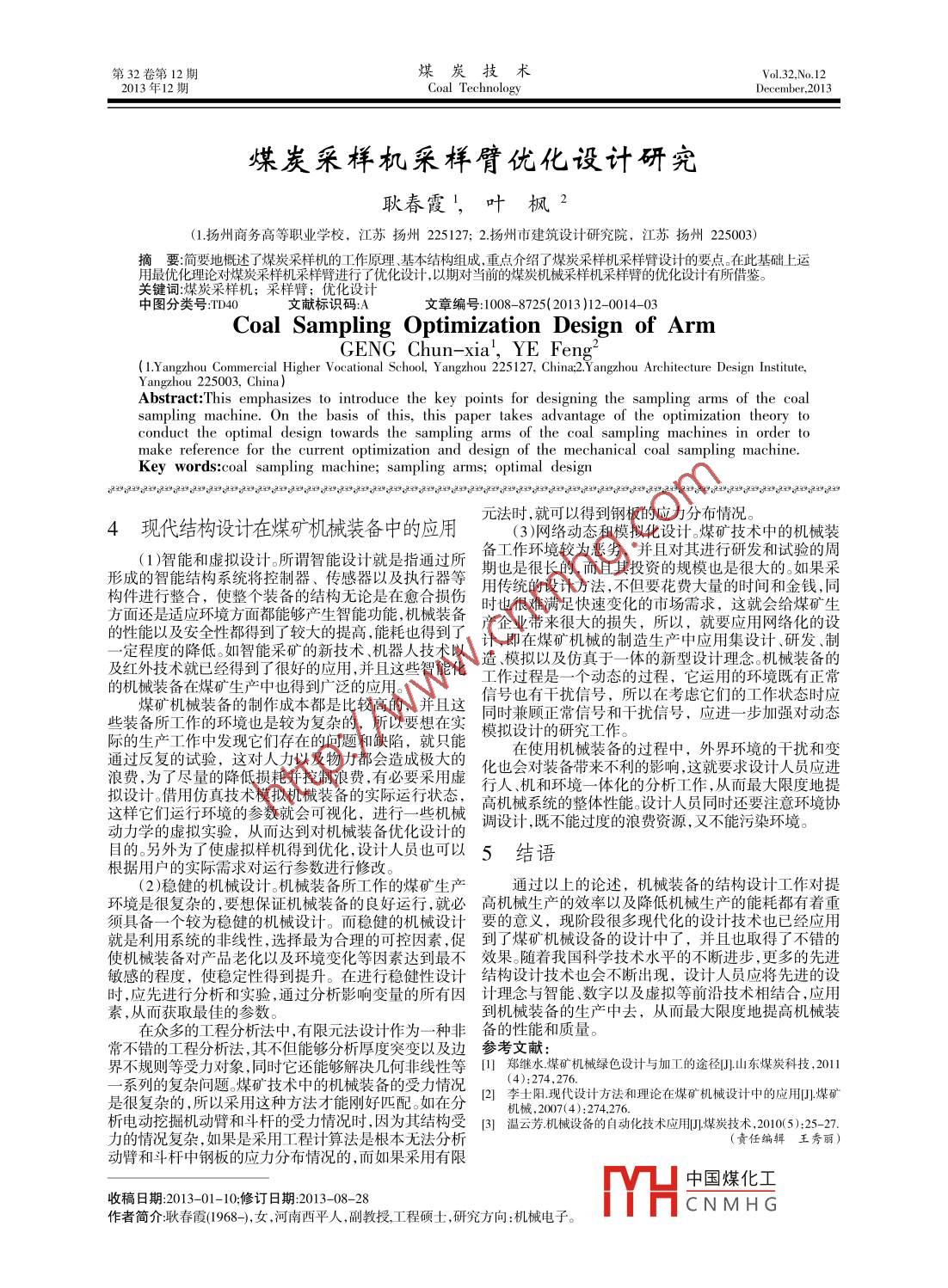煤炭采樣機(jī)采樣臂優(yōu)化設(shè)計(jì)研究