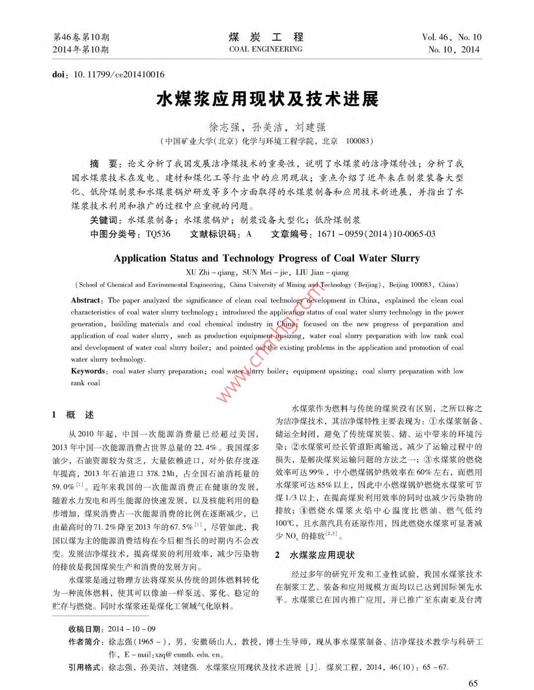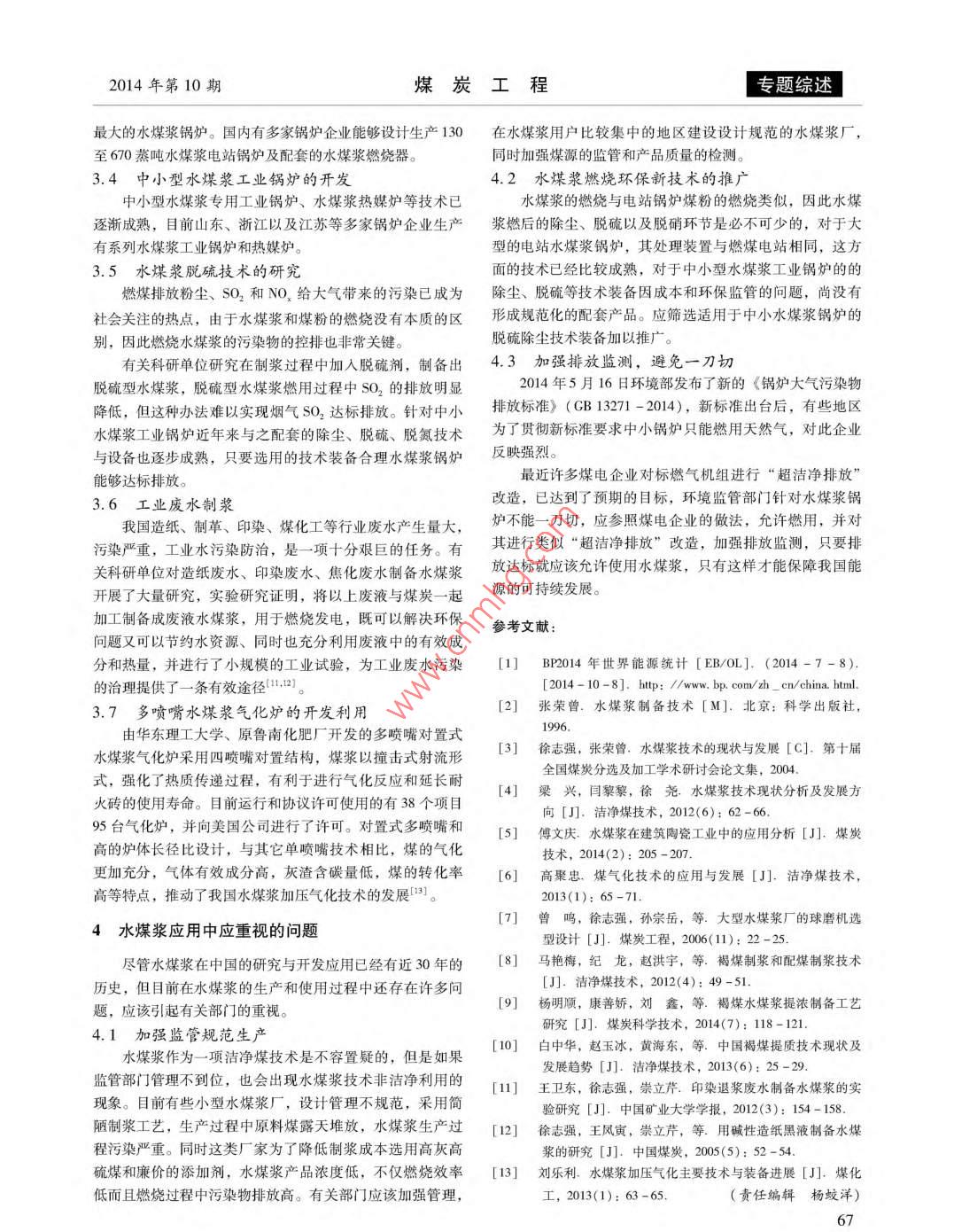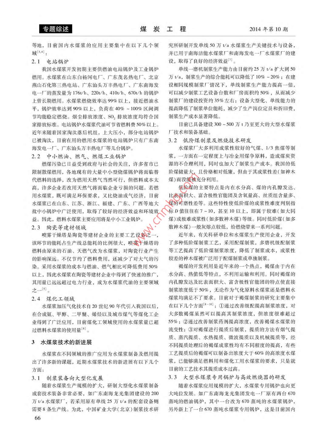 水煤漿應(yīng)用現(xiàn)狀及技術(shù)進(jìn)展