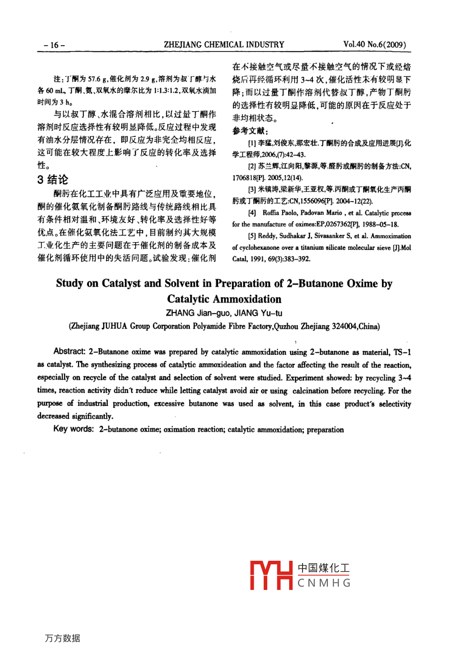 - 期刊名字:浙江化工
