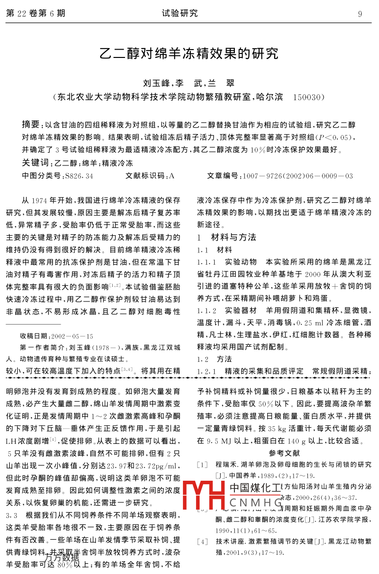 乙二醇對綿羊凍精效果的研究