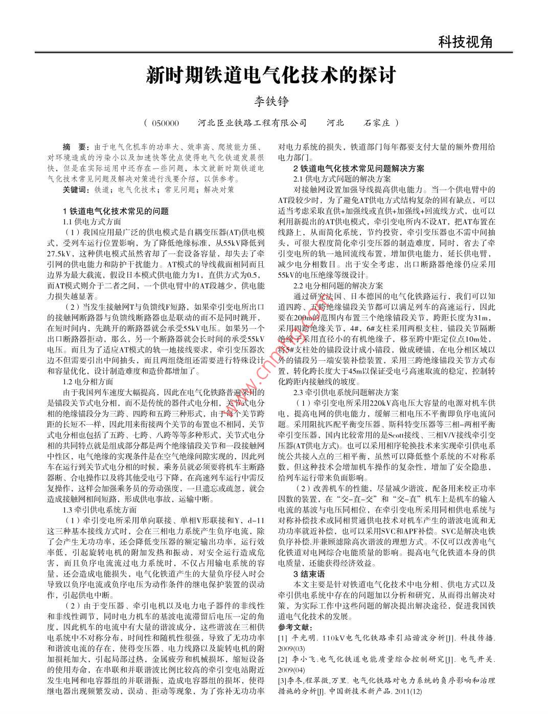 新時期鐵道電氣化技術(shù)的探討