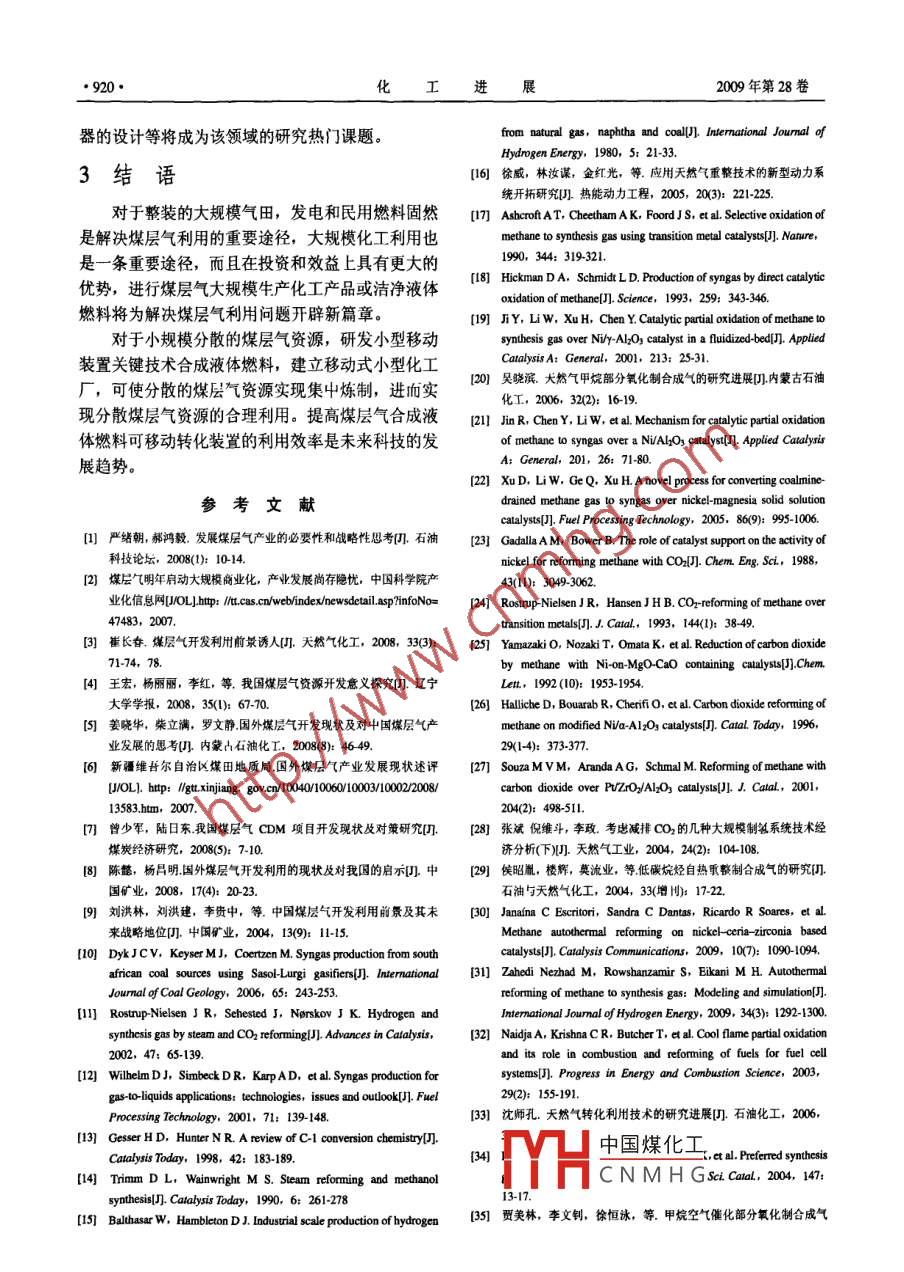 煤層氣經(jīng)合成氣制液體燃料的關(guān)鍵技術(shù)