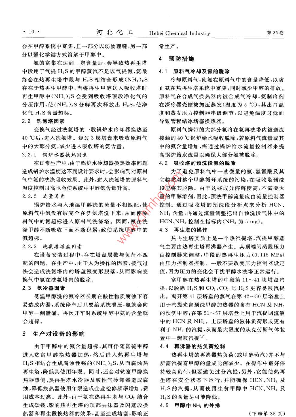 低溫甲醇洗循環(huán)甲醇氨含量高的原因及預(yù)防措施