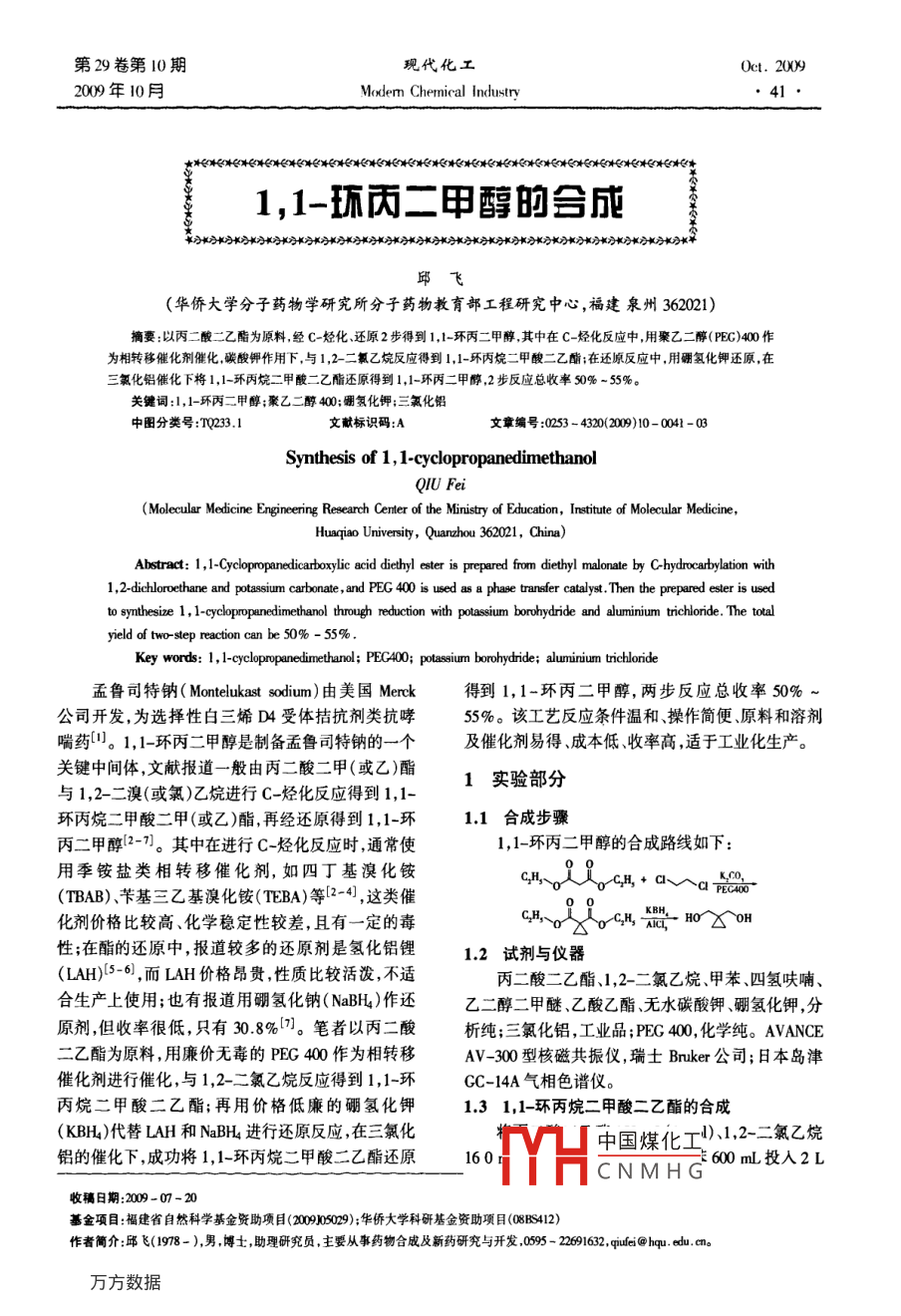 1,1-環(huán)丙二甲醇的合成