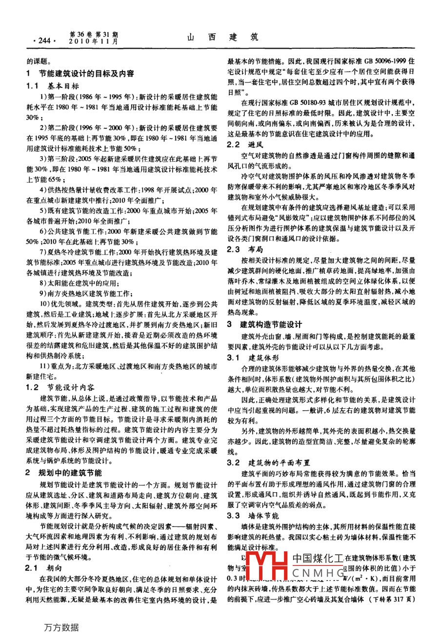 第36卷第31期山建Vol 36 No 312010年11SHANXI ARCHITECTU·243建就節(jié)能文章編號:1009-6825(2010)31-0243節(jié)能建筑及其設(shè)計閆彩云摘要:對節(jié)能建筑設(shè)計的目標(biāo)及內(nèi)容進(jìn)行了闡述,從規(guī)劃建筑節(jié)能及建筑構(gòu)造節(jié)能設(shè)計上對節(jié)能建筑設(shè)計提出了一些切實可行的技術(shù)措施,以期指導(dǎo)建筑設(shè)計過程中更好地利用自然能源,提高建筑中能源利用效率關(guān)鍵詞:節(jié)能建筑,節(jié)能設(shè)計,建筑構(gòu)造中圖分類號:TU201.5文獻(xiàn)標(biāo)識碼:A能源危機”席卷世界的今天,能源消費正以驚人的速度增消費量的比例逐年上升。目前有資料統(tǒng)計:全世界有近30%的能長。根據(jù)我國國情,節(jié)約能源已成為當(dāng)前的一項迫切任務(wù)。建筑源消耗在建筑上,尤其在我國,建筑能耗已經(jīng)超過全國能源消費是用能大戶,作為人類生活中的重要場所,在其建設(shè)與使用過程總敏的1/4,且呈遞增趨勢。因此,在我國提倡節(jié)能建筑,推廣節(jié)中,不可避免地需要消耗大量的能源和資源,并且隨著我國經(jīng)濟能技術(shù)已經(jīng)是迫在眉睫勢在必行了。如何在建筑設(shè)計中,更好的快速發(fā)展和人們生活水平的不斷提高建筑能耗占我國能源總地利用自然能源提高建筑中能源利用效率則是建筑師需要探討擴大對藝術(shù)的理解。煉。很久以來,材質(zhì)作為雕塑語言的直接體現(xiàn),對材質(zhì)的運用幾對于材質(zhì)方面認(rèn)為材質(zhì)不僅是雕塑的唯一,語言聲光等也乎成了藝術(shù)家手中的“畫筆”沒有哪一個歷史時期的藝術(shù)家能像是藝術(shù)的表現(xiàn)形式。繪畫與雕塑的界限已不復(fù)存在,藝術(shù)領(lǐng)域出現(xiàn)在這樣自如的運用材質(zhì)。材質(zhì)在雕塑創(chuàng)作中的地位愈加突顯,現(xiàn)了空前大融合,雕塑和繪畫只是一種人們表達(dá)所需要的形式,可以說雕塑的形式是由材質(zhì)誘導(dǎo)而產(chǎn)生的,雕塑的主題也由材質(zhì)人類創(chuàng)造的能力便可以從感情思想開始,由一種材質(zhì)表現(xiàn)出來,的屬性而闡發(fā)有時材質(zhì)就是創(chuàng)作的主題甚至影響到整個環(huán)境。這樣就需要用身體和身體的機能需要一切所有可能使用的東西縱觀世界雕塑史,隨著社會的發(fā)展、科技的進(jìn)步,雕塑材質(zhì)由作多種材質(zhì)和表現(xiàn)手法的綜合利用為藝術(shù)創(chuàng)作的材質(zhì)材質(zhì)的選泥土、木到石,進(jìn)而發(fā)展到人工復(fù)合材質(zhì),其性能不斷被感知所更擇有了前所未有的多種可能。雕塑作品的語言也逐漸突破傳統(tǒng)新。材質(zhì)的選擇在雕塑創(chuàng)作中愈來愈豐富呈現(xiàn)深層次、多樣化的單一模式而走向多元化。當(dāng)代雕塑在空間形態(tài)造型語言表的特點形成了由簡單到復(fù)雜由表面到本質(zhì),由客觀到主觀由物現(xiàn)形式材質(zhì)與技術(shù)應(yīng)用等方面有著相當(dāng)大的發(fā)展。與實用性分象到思想的放射性發(fā)展脈絡(luò)。雕塑所運用材質(zhì)的歷史美感在雕塑離而成為純粹的藝術(shù),完全為藝術(shù)而藝術(shù),成為這個階段雕塑的創(chuàng)作中顯示著使材質(zhì)自身的審美價值和思想內(nèi)涵得以體現(xiàn)重要特征。材質(zhì)的概念也不僅僅局限在傳統(tǒng)的石材、青銅等雕伴隨著人類文明的發(fā)展雕塑藝術(shù)愈來愈證明它是時代思材質(zhì)中,而是擴展到能讓觀念得以傳達(dá)的所有材質(zhì)形式,包括能想感情、審美觀念的結(jié)晶,是社會發(fā)展形象化的記載是一代又利用到的各種具象和抽象的材質(zhì)及材質(zhì)的構(gòu)成形式。這個時期代人們追求的精神價值的體現(xiàn),歷史上每次對材質(zhì)的發(fā)明和應(yīng)玻璃陶瓷纖維、一些感光材質(zhì)影像、人體和諸多能表現(xiàn)藝術(shù)家用都將推進(jìn)雕塑的創(chuàng)作向前邁進(jìn)。在藝術(shù)不斷演進(jìn)的歷史中材觀念的材質(zhì)都成為現(xiàn)代藝術(shù)家比較青睞的新材質(zhì)?,F(xiàn)代雕塑對質(zhì)的變革演繹著觀念的更新,而觀念的置換則決定著材質(zhì)在藝術(shù)材質(zhì)和技術(shù)的拓展呈現(xiàn)出了前所未有的生機和活力從而極大的中的語言價值和意義,顯然材質(zhì)的變革是藝術(shù)演進(jìn)和發(fā)展的主豐富了現(xiàn)代雕塑的語言。藝術(shù)家將自己的潛意識和沖動表現(xiàn)在體是它帶來藝術(shù)語言的獨特魅力和不斷新生。它的發(fā)展代表跨藝術(shù)作品中,在一定藝術(shù)理論和哲學(xué)思想指導(dǎo)下并反復(fù)嘗試逐時代的進(jìn)步,與時俱進(jìn),不斷成熟。步形成并確立了自己的藝術(shù)風(fēng)格。他們這些藝術(shù)在材質(zhì)的選擇參考文獻(xiàn):上完全不同于傳統(tǒng)的藝術(shù)形式突破了傳統(tǒng)雕塑在材質(zhì)選擇上的[1]黃宗賢,吳永強中西雕塑比較[M]·石家莊:河北美術(shù)出版性,從而走向復(fù)合多元化。社,2003:235-241“原始藝術(shù),教給藝術(shù)家第一個原理那就是對材質(zhì)的忠誠”。[2]朱國榮中國雕塑史話[M]上海:上海書畫出版社,2002:這是英國藝術(shù)家亨利·摩爾經(jīng)過幾十年的雕塑實踐感悟所得10-12.其實,這不僅是原始藝術(shù)的藝術(shù)本質(zhì)特征,也是對從蠻荒到文明[3]王黎明.西方現(xiàn)代雕塑[M]