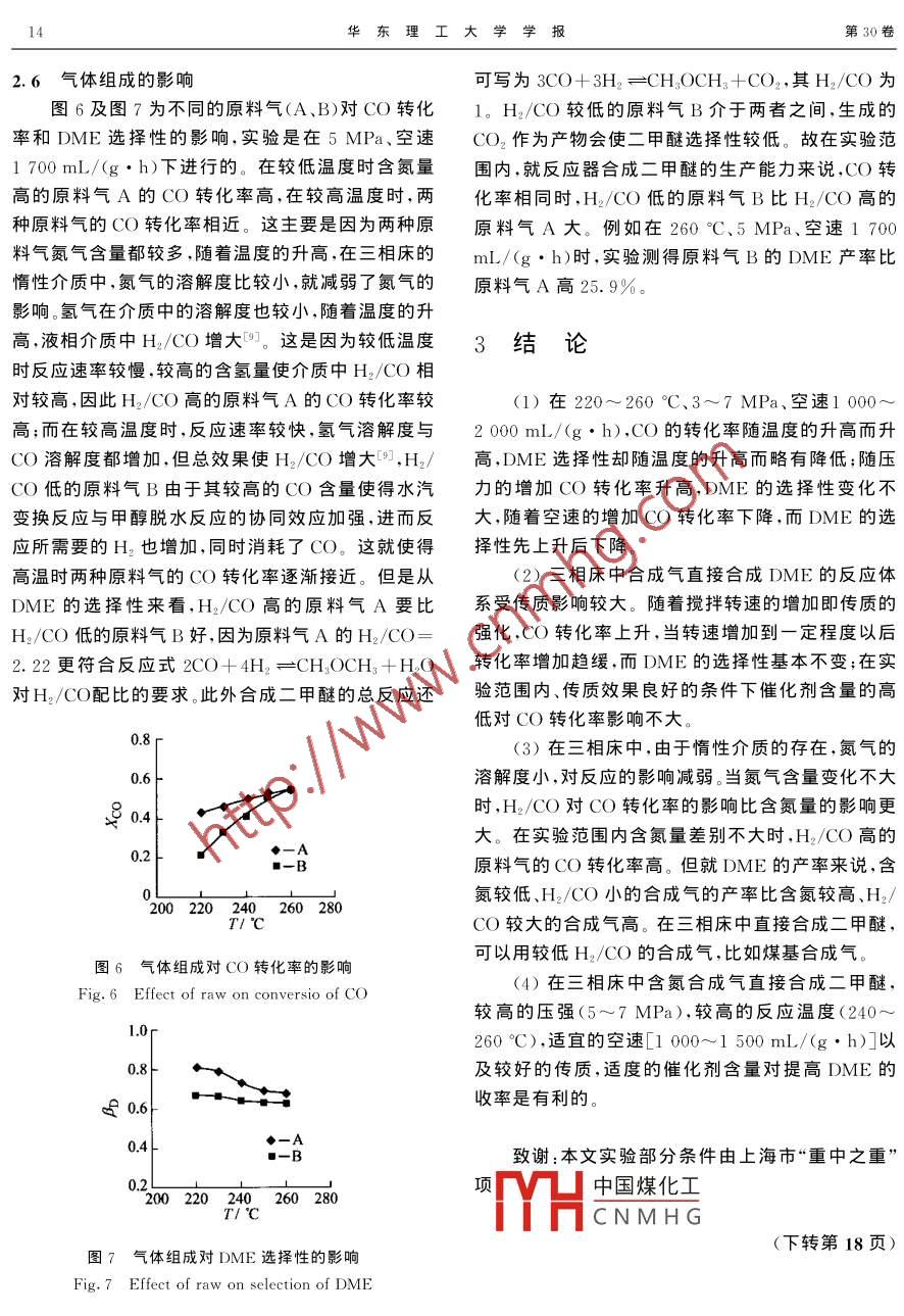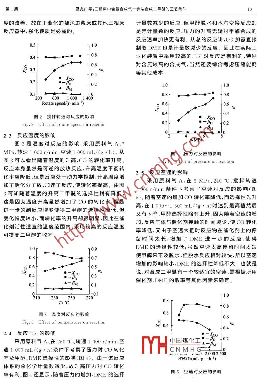 三相床中含氮合成氣一步法合成二甲醚的工藝條件