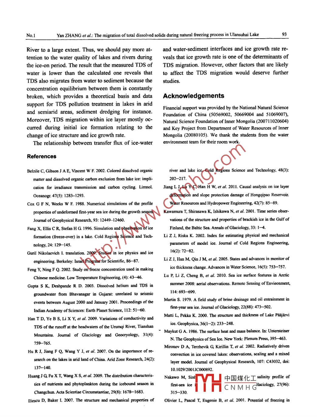 The migration of total dissolved solids during natural freezing process in Ulansuhai Lake