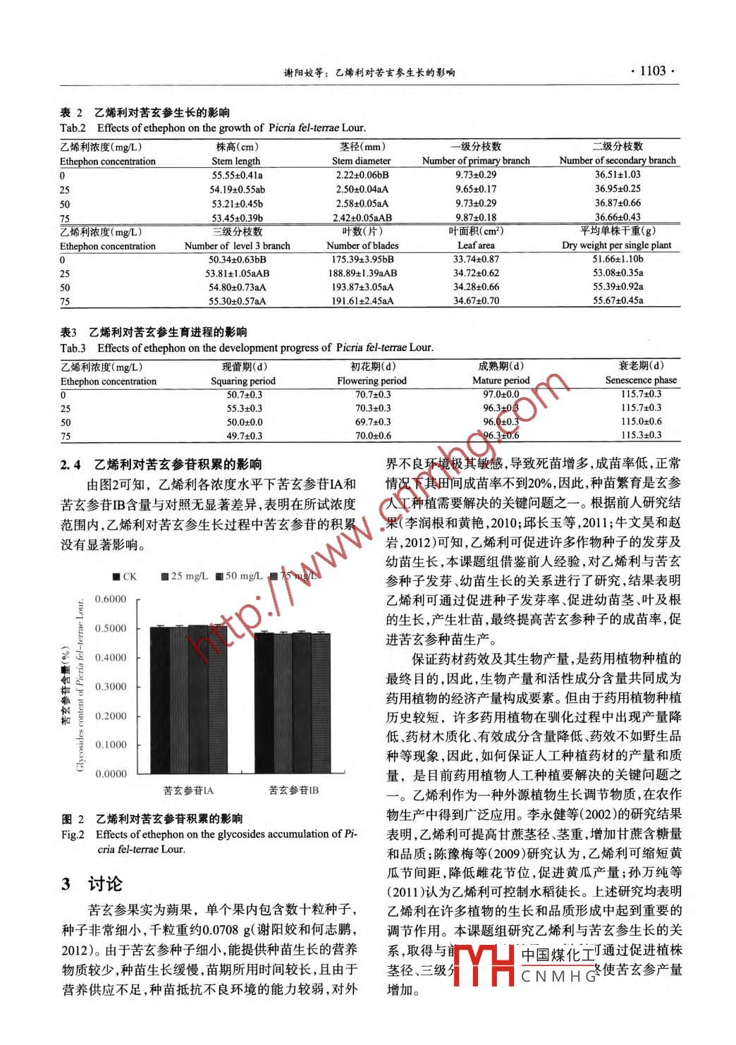 乙烯利對(duì)苦玄參生長的影響