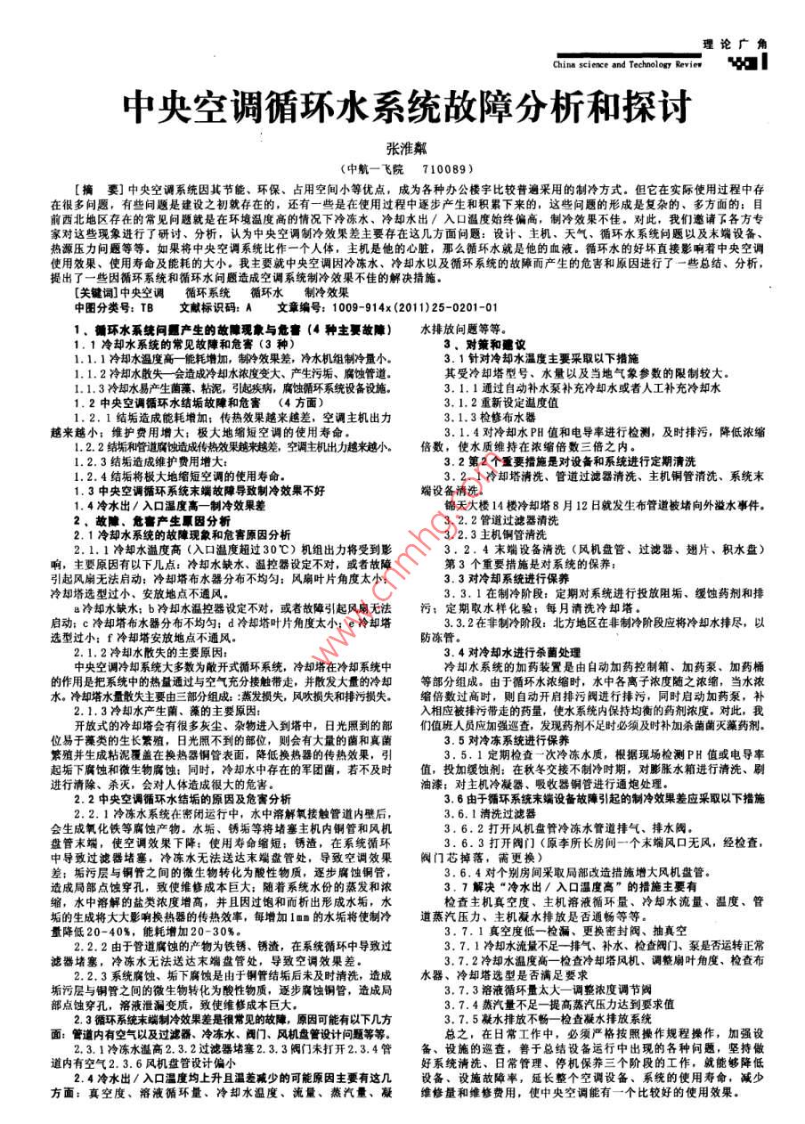 中央空調(diào)循環(huán)水系統(tǒng)故障分析和探討