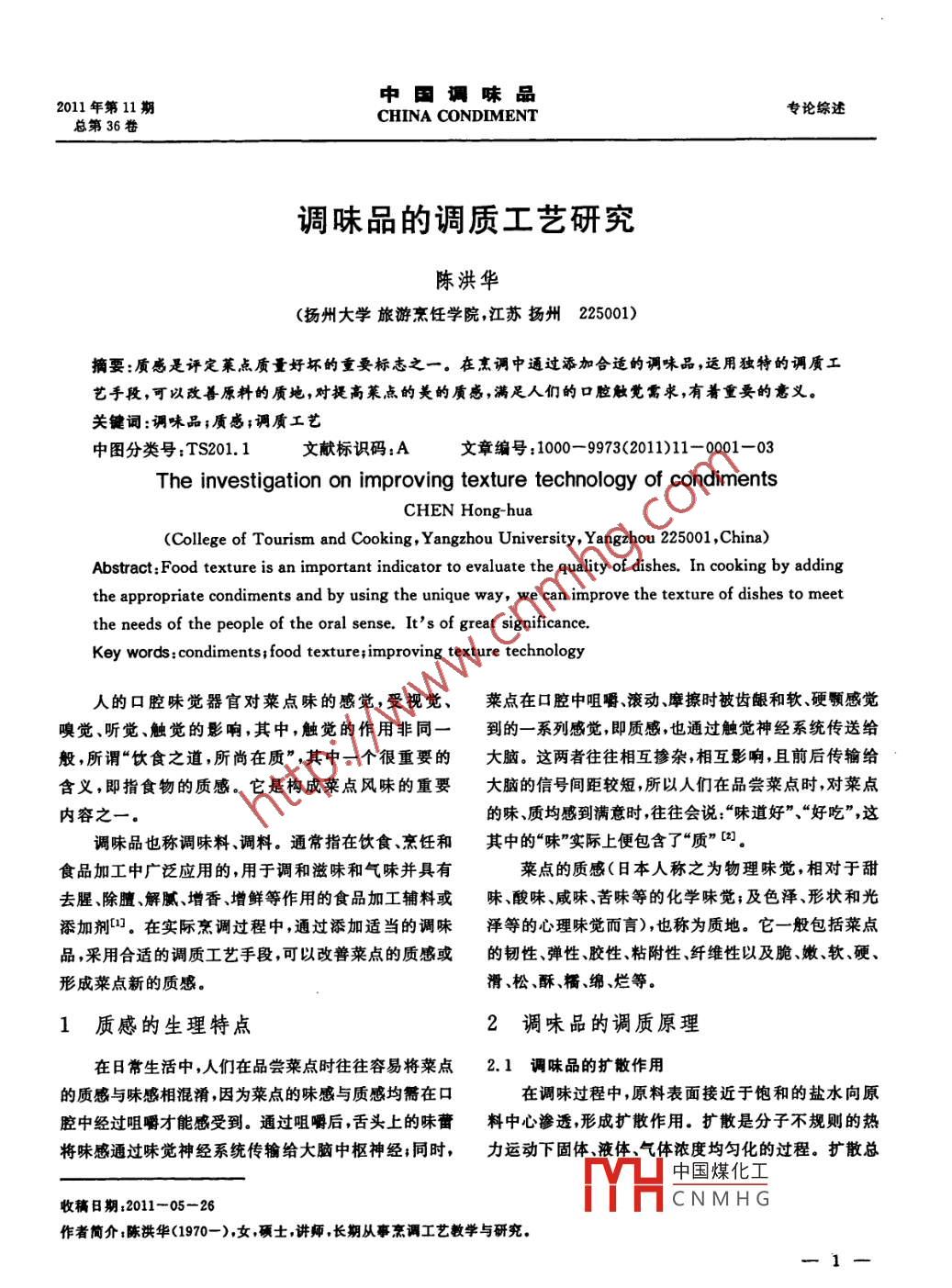 調(diào)味品的調(diào)質(zhì)工藝研究