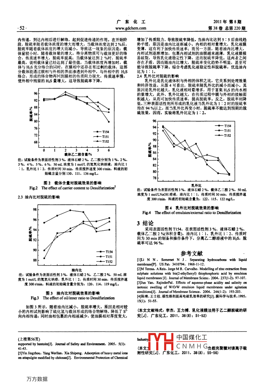 乳化液膜法用于乙二醇脫硫的研究