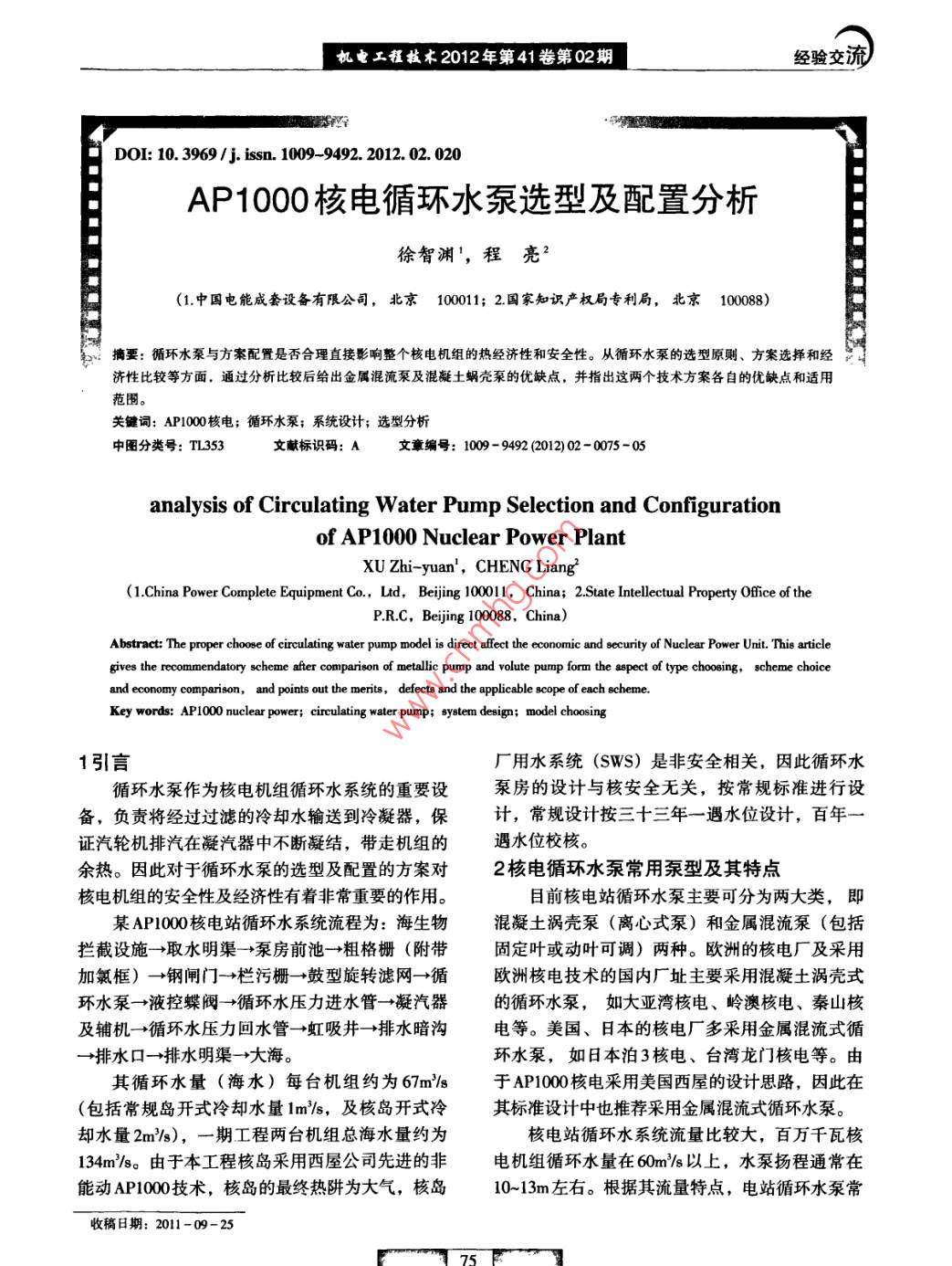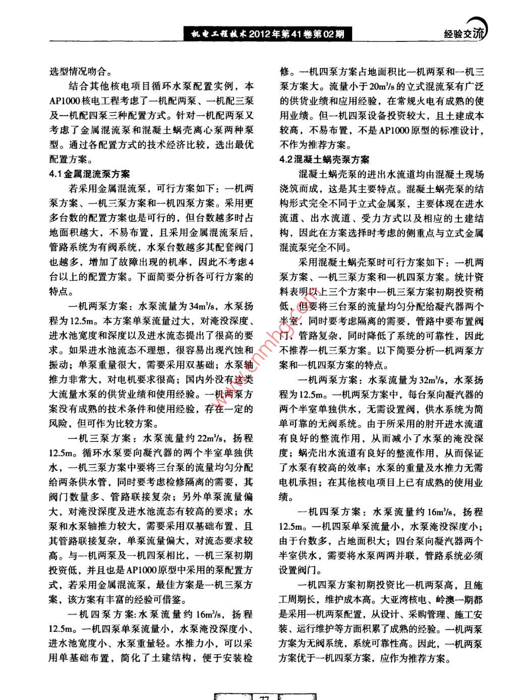 AP1000核電循環(huán)水泵選型及配置分析