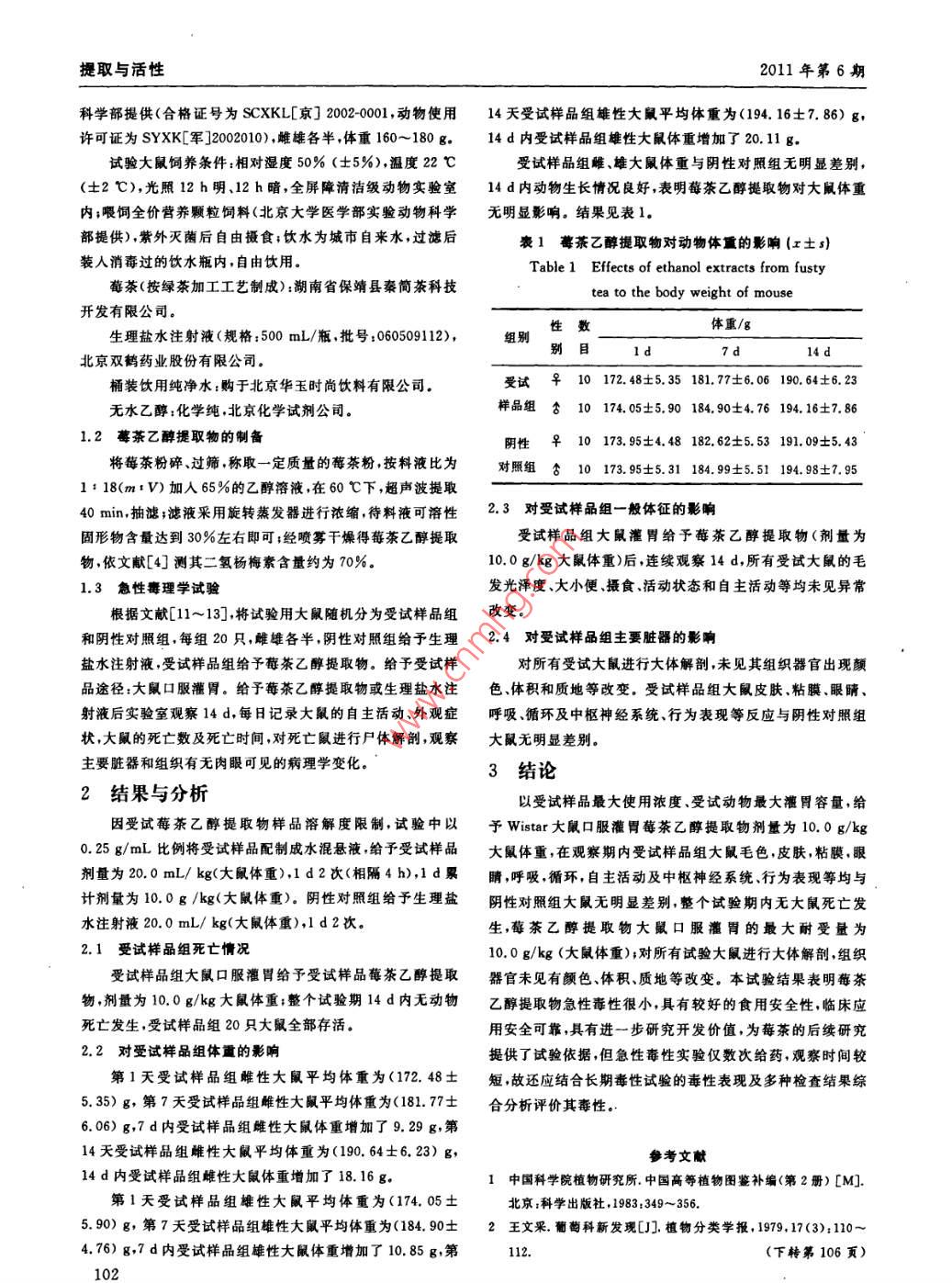 莓茶乙醇提取物的急性毒性研究