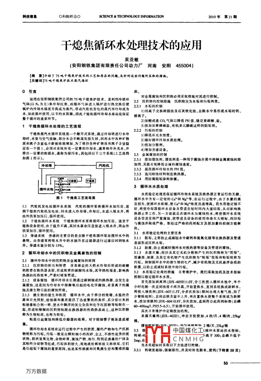 干熄焦循環(huán)水處理技術(shù)的應(yīng)用