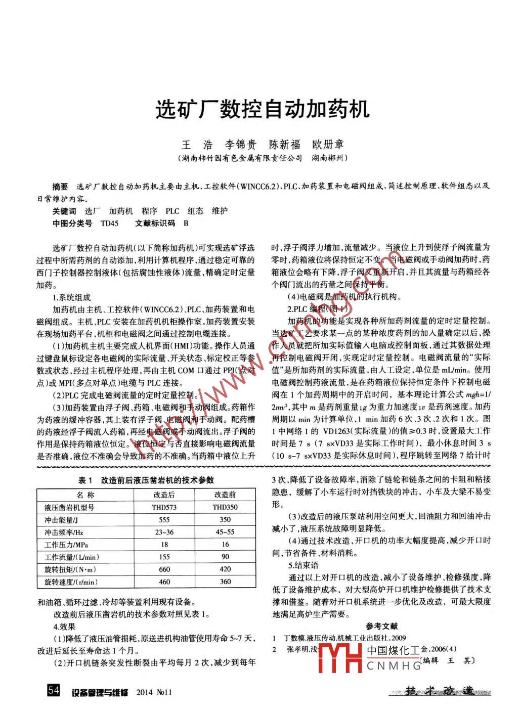 高爐開口機改造薛峰(攀鋼工程技術(shù)有限公司西昌分公司四川西昌摘要西昌鋼釩公司煉鐵廠高爐開口杋處在髙溫、多塵惡劣環(huán)境中運行,經(jīng)常出現(xiàn)結(jié)構(gòu)件損壞、元件更換頻繁等問題,進行一系列改造,降低了開口機故障率,滿足高爐生產(chǎn)需要關(guān)鍵詞開口機結(jié)構(gòu)改造中圖分類號TF321.5文獻標識碼B開口機是高爐爐前作業(yè)重要設(shè)備之一,用于鉆開由液壓炮功能THD350型鑿巖機沖擊力不足,旋轉(zhuǎn)扭矩偏小,開鐵口時封堵的鐵口,它的性能和效率直接影響到高爐生產(chǎn)。攀鋼煉鐵間偏長。是以攀西釩鈦磁鐵礦作為高爐冶煉原料,由于產(chǎn)生的鐵渣黏性2原因分析高,在出鐵時易發(fā)生鐵口堵塞等現(xiàn)象,頻繁使用開口機開鐵口,(1)高爐開口機回轉(zhuǎn)臂與送進小車沖擊機構(gòu)連接油管布設(shè)備容易被高溫鐵水燒損。針對生產(chǎn)實際中經(jīng)常出現(xiàn)的問題,置如圖1所示,液壓管路由25m耐高溫高壓膠管連接,送進并結(jié)合開口機使用環(huán)境,經(jīng)過多項技術(shù)改造同時對開口機液壓小車向鐵口方向移動或者在開鐵口過程中,小車移動到大梁系統(tǒng)不斷優(yōu)化,使得開口機故障率大幅度降低,為高爐高效生產(chǎn)中前部時,高壓膠管離鐵溝較近,因釩鈦磁鐵礦冶煉的獨特提供了保障。性,在高爐出鐵時,鐵水噴濺嚴重高壓膠管易受到鐵水噴濺口出鐵口中心線圖1開口機結(jié)構(gòu)示意圖1存在的問題而燒損。爐前開口機在日常使用過程中經(jīng)常出現(xiàn)以下幾方面問題。(2)送進小車的前后移動是由液壓馬達通過鏈輪連接鏈條(1)開口機送進機構(gòu)油管容易損壞,更換頻繁。驅(qū)動安裝在液壓馬達上的主傳動鏈輪帶動鏈條經(jīng)過前、后導向(2)送進鏈條容易發(fā)生斷裂,導向鏈輪與鏈條之間易出現(xiàn)卡鏈輪,實現(xiàn)開口機送進小車的前進和后退。開口機送進鏈條是由阻和粘接,送進小車運行時易發(fā)生卡阻,送進小車前后極限位擋一根單鏈拖動送進小車,由單鏈連接在送進小車前后兩塊連接鐵塊容易被撞掉和大梁被撞變形板上,由于設(shè)備運行環(huán)境差,扭轉(zhuǎn)力矩大,經(jīng)常發(fā)生送進鏈條斷(3)開口機液壓控制系統(tǒng)空間狹小,維護檢修困難。送進小裂現(xiàn)象。同時高爐原料是釩鈦磁鐵礦,冶煉后的鐵水噴濺嚴重車后退時沖擊力較大,易造成機械結(jié)構(gòu)損壞。鑿巖機沖擊換向閥鐵水噴濺到鏈輪或鏈條上造成導向鏈輪和鏈條之間經(jīng)常卡阻和芯易發(fā)生卡阻,導致沖擊力量不夠。粘接。送進小中國煤化工小車運行時輪緣靠在(4)鑿巖機是開口機主要驅(qū)動裝置,具備旋轉(zhuǎn)和沖擊兩大大梁邊緣磨HHCNMHG較大經(jīng)常發(fā)生卡阻52設(shè)萏盟理與維峰2014Nl1送進小車運行的前后極限位是依靠焊接在大梁上的擋鐵塊定鐵塊,小車運行到極限位置時由于減震碟簧片作用緩解小車和擋位,小車運行時無緩沖或減速過程中,直接與擋鐵塊接觸,對擋鐵塊的撞擊(圖3)。鐵塊沖擊力較大,經(jīng)常發(fā)生擋鐵塊被撞掉或大梁被撞變形事故(3)因開口機與液壓炮是共用一個液壓泵站,且開口機與液壓炮分別設(shè)置油泵供油,造成液壓泵站布置擁擠。小車送進鐵口時需較大進推力,而小車的前進與后退液壓控制無速度調(diào)節(jié)功能,使得小車在后退時對后極限撞擊嚴重。鑿巖機回油需要經(jīng)過換向閥,因此易發(fā)生油路◆◆∠拖鏈連接板www被壓卡死而無沖擊力·小車輪擋輪(4)隨著高爐強化冶煉措施,高爐利用系數(shù)不斷提高,生鐵產(chǎn)量不斷增加,對鐵口穩(wěn)定率提緩沖器組件出更高需求。原設(shè)計開口機鑿巖機沖擊壓力及旋轉(zhuǎn)速度、扭轉(zhuǎn)力矩均偏小,無法滿足快速打開鐵口的要求。3改造措施(1)將開口機送進機構(gòu)上的配管改為折疊機構(gòu)型式,如圖2折疊機構(gòu)上、中、下3個活動圖3增加擋輪及緩沖組件鉸點處用高壓膠管連接保留了高壓膠管維護簡單、更換快速的(3)高爐液壓炮是堵鐵口設(shè)備,開口機與液壓炮液壓控制系優(yōu)點,避免了鋼鉸結(jié)構(gòu)的油管經(jīng)常產(chǎn)生卡阻和漏油處理時間長統(tǒng)為共用油泵供油。生產(chǎn)工藝上開口機和液壓炮禁止同時動作,的缺點。折疊機構(gòu)上高壓膠管運行過程中始終跟鐵水主溝保持因此利用液壓炮設(shè)計壓力提供給開口機為解決壓力不匹配問題足夠距離最大程度減小了高壓膠管離鐵溝近而引起的高溫、濺加裝一組減壓閥使開口機回路壓力降到要求的15-20MPa。在鐵等導致油管損壞。送進小車回路上增加一組溢流閥,根據(jù)實際需要可以自由調(diào)整小折疊機構(gòu)出鐵中心線2370圖2改進后的開口機結(jié)構(gòu)(2)將單鏈傳動改為雙排鏈傳動如一排鏈條鏈節(jié)有燒損,車回退壓力。由于鑿巖機無逆向沖擊設(shè)計將回油路改成不經(jīng)過另一排鏈條還可以繼續(xù)使用,不會發(fā)生鏈條突發(fā)性斷裂使設(shè)備換向閥而直接回油箱,從而減少了回油阻力和回油沖擊。無法運行,方便維護人員更換處理。將前后倒向鏈輪和張緊鏈(4)使用THD573型號鑿巖機替換原設(shè)計的THD350型號輪改為滑輪型解決了鏈輪和鏈條之間的卡阻和粘接。鑿巖機,采用大功率的液壓鑿巖機以提高開口能力將原有鑿巖針對小車運行時卡阻現(xiàn)象,在車輪軸向中