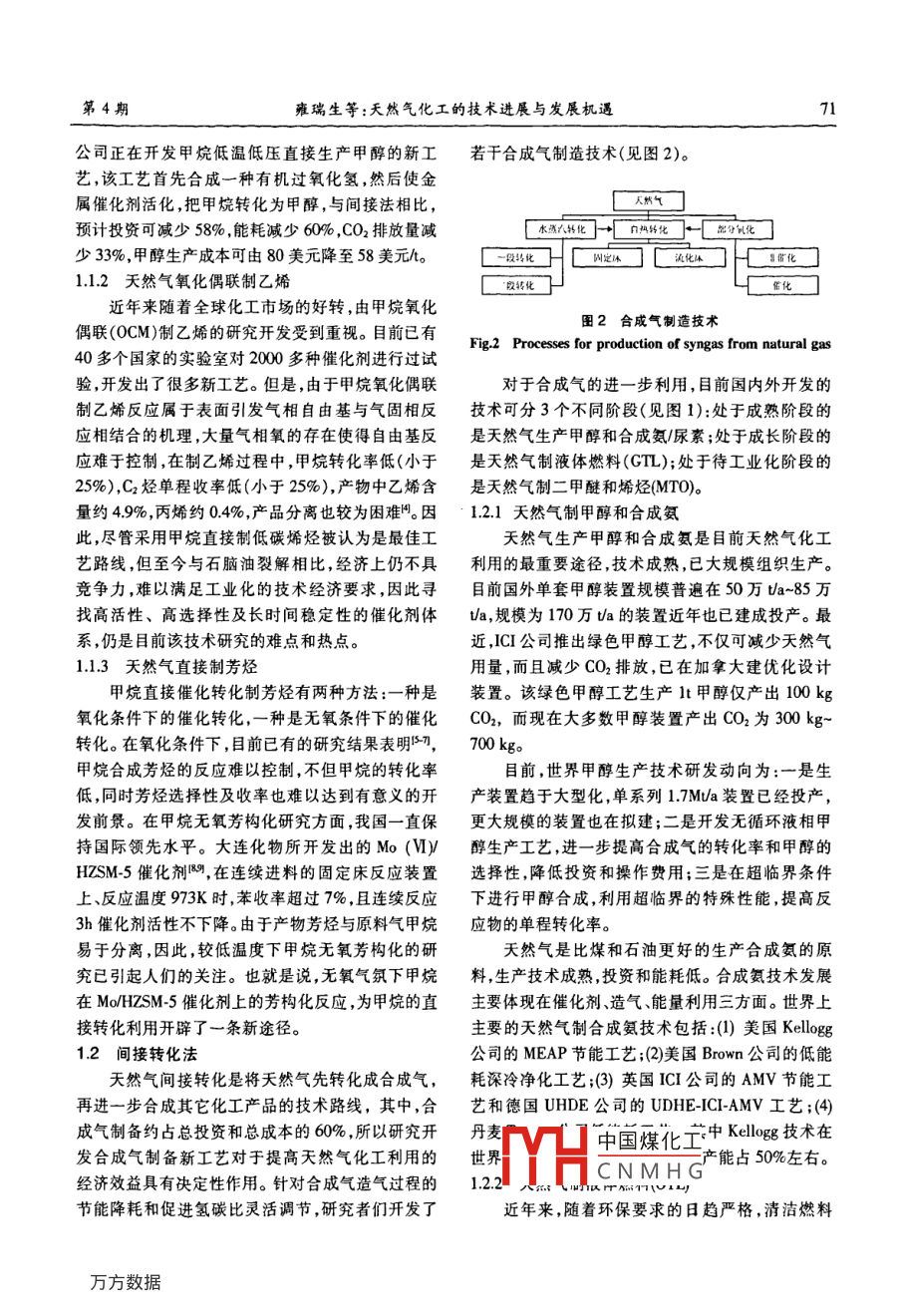 天然氣化工的技術(shù)進(jìn)展與發(fā)展機(jī)遇