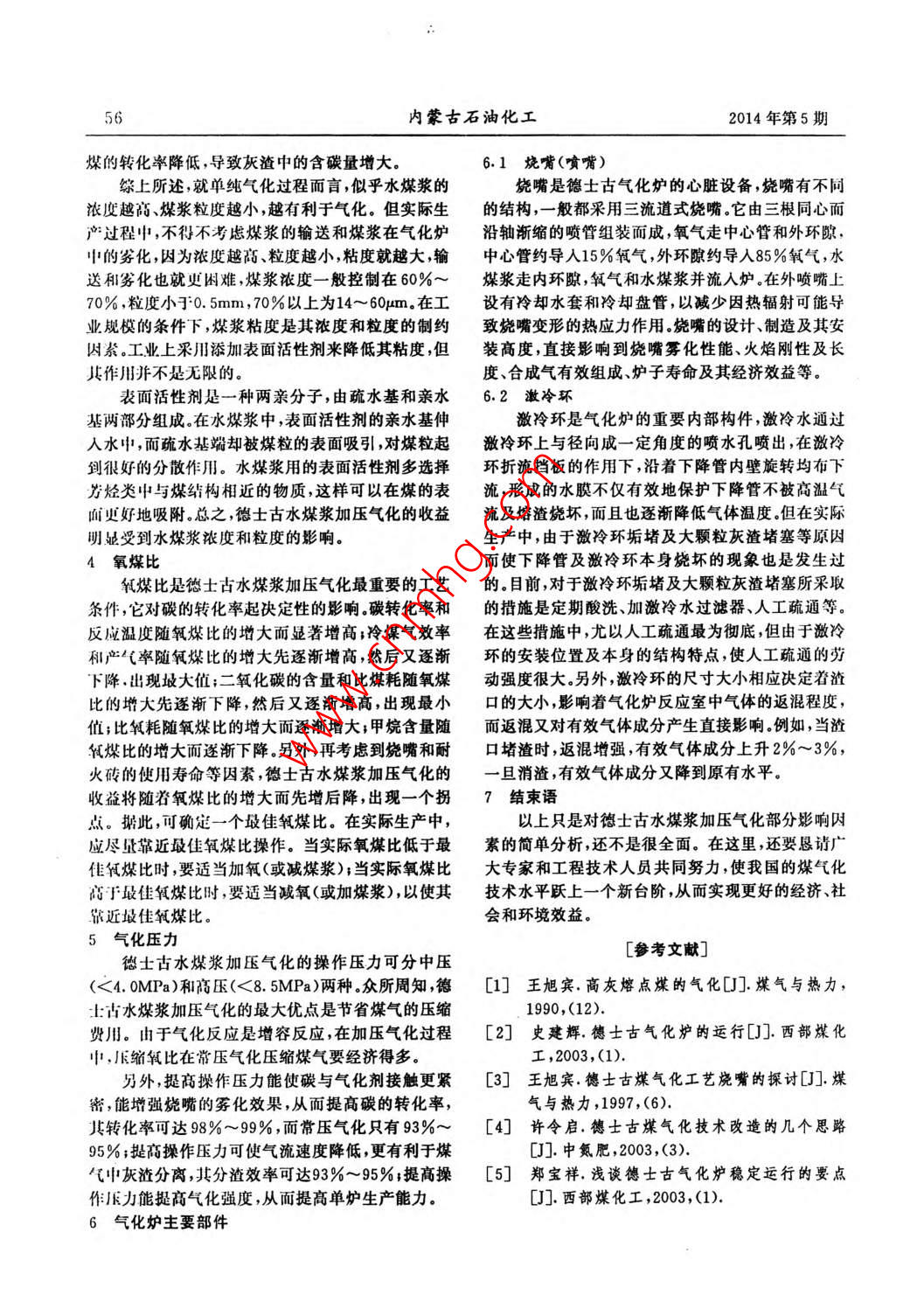 德士古水煤漿加壓氣化的幾個重要影響因素