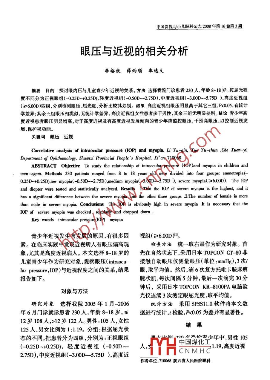 眼壓與近視的相關(guān)分析