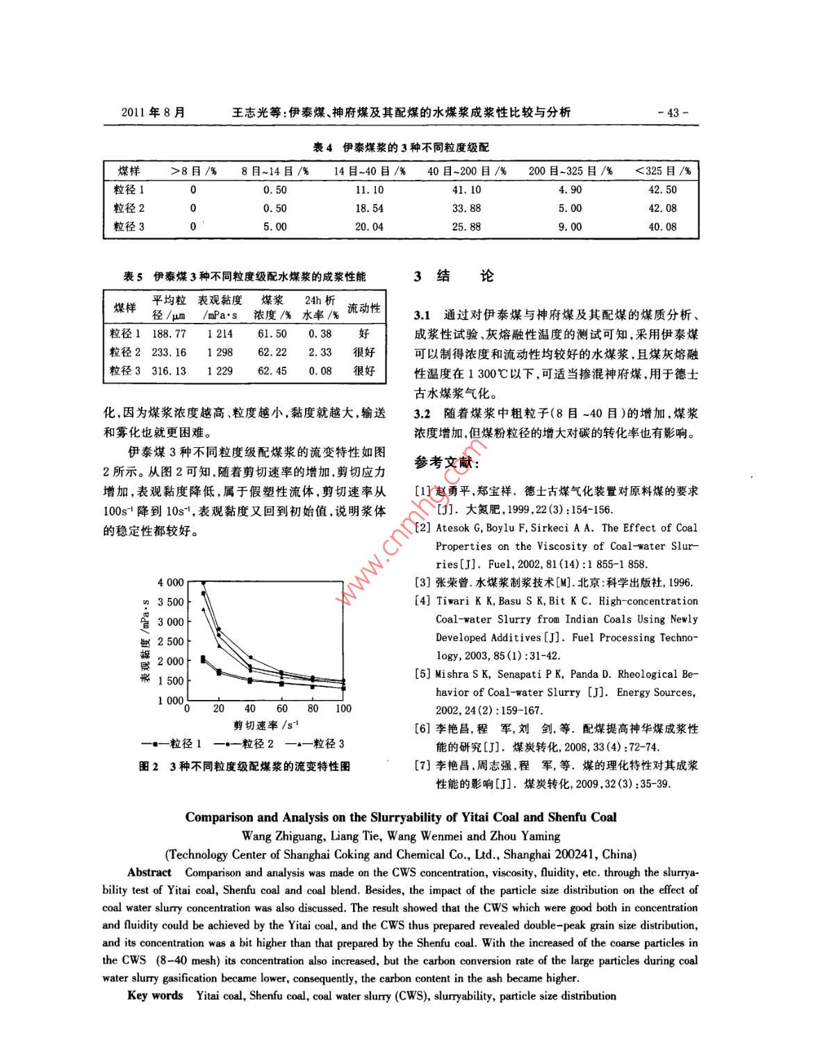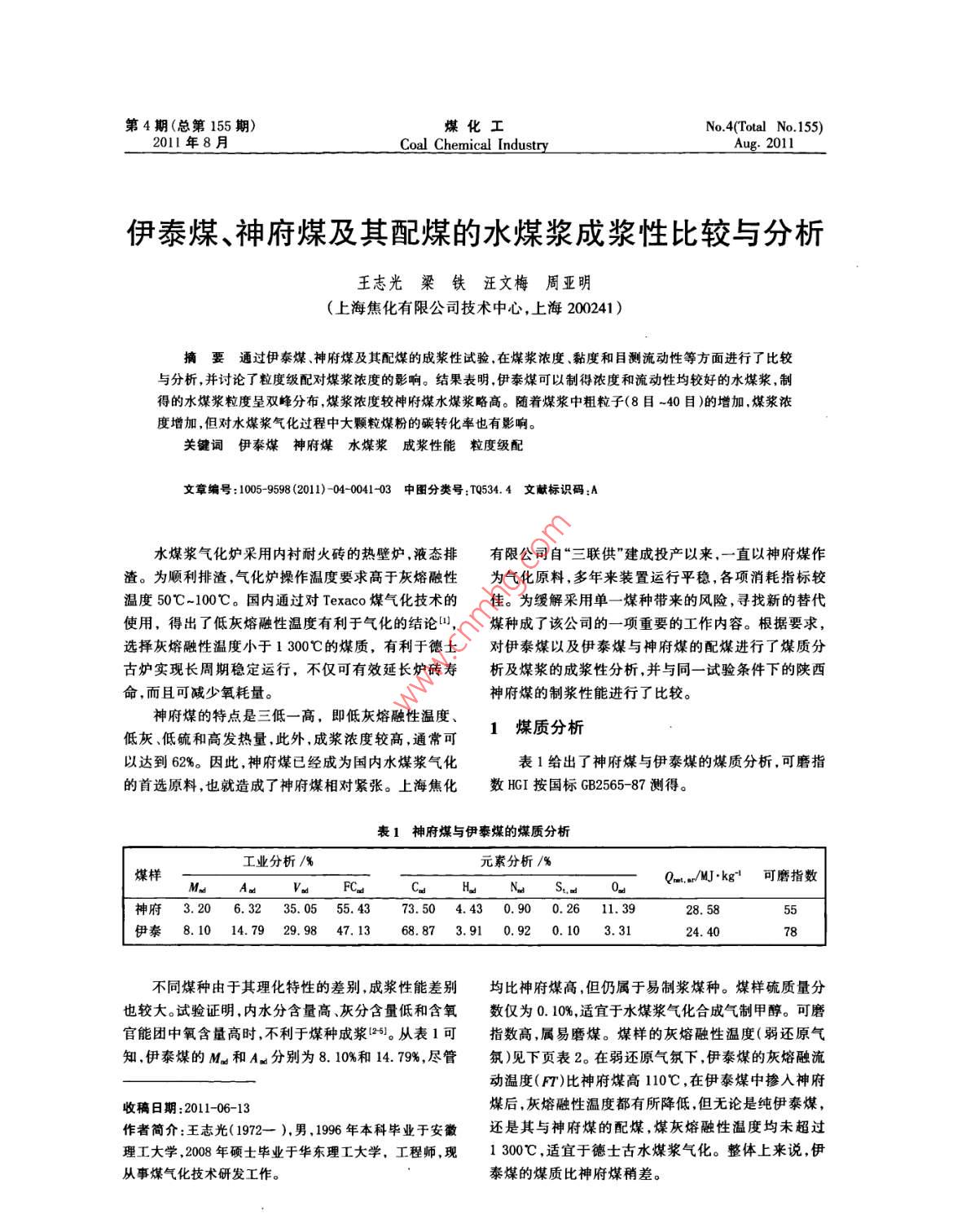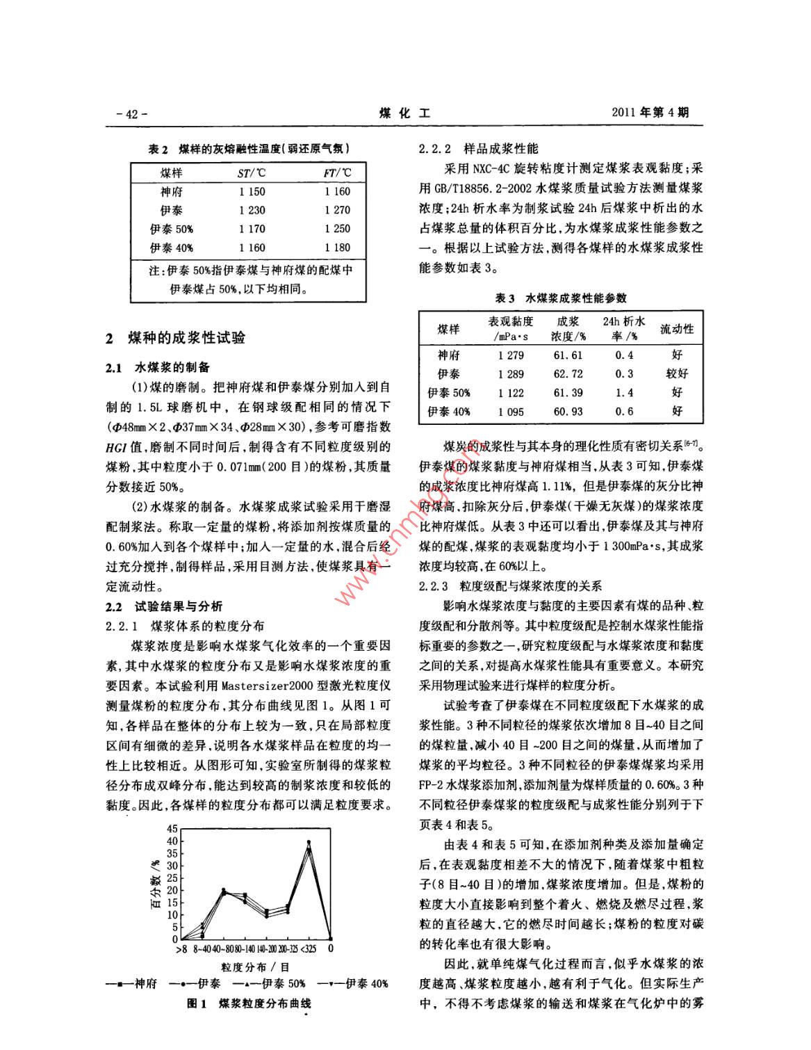 伊泰煤、神府煤及其配煤的水煤漿成漿性比較與分析 伊泰煤、神府煤及其配煤的水煤漿成漿性比較與分析