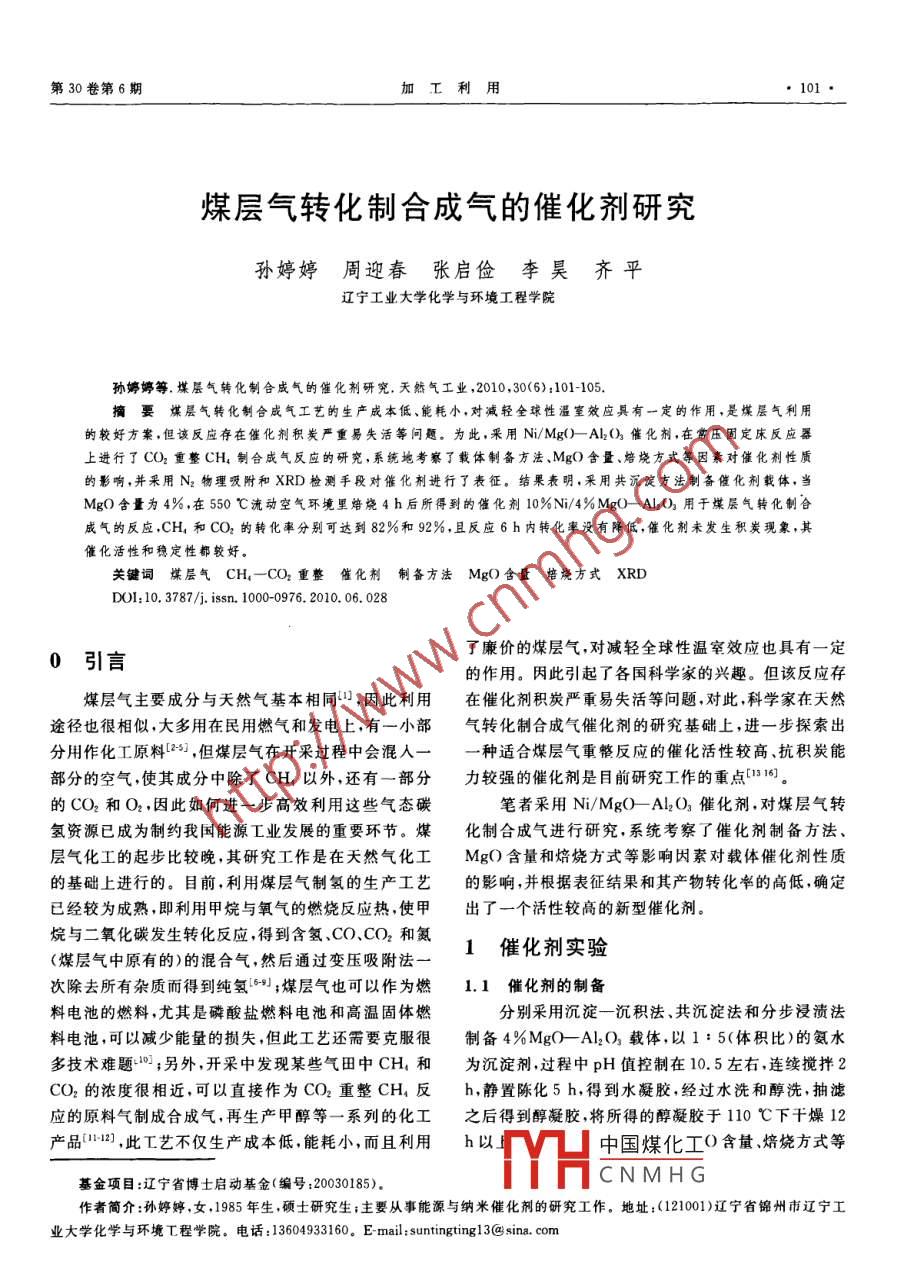 煤層氣轉(zhuǎn)化制合成氣的催化劑研究