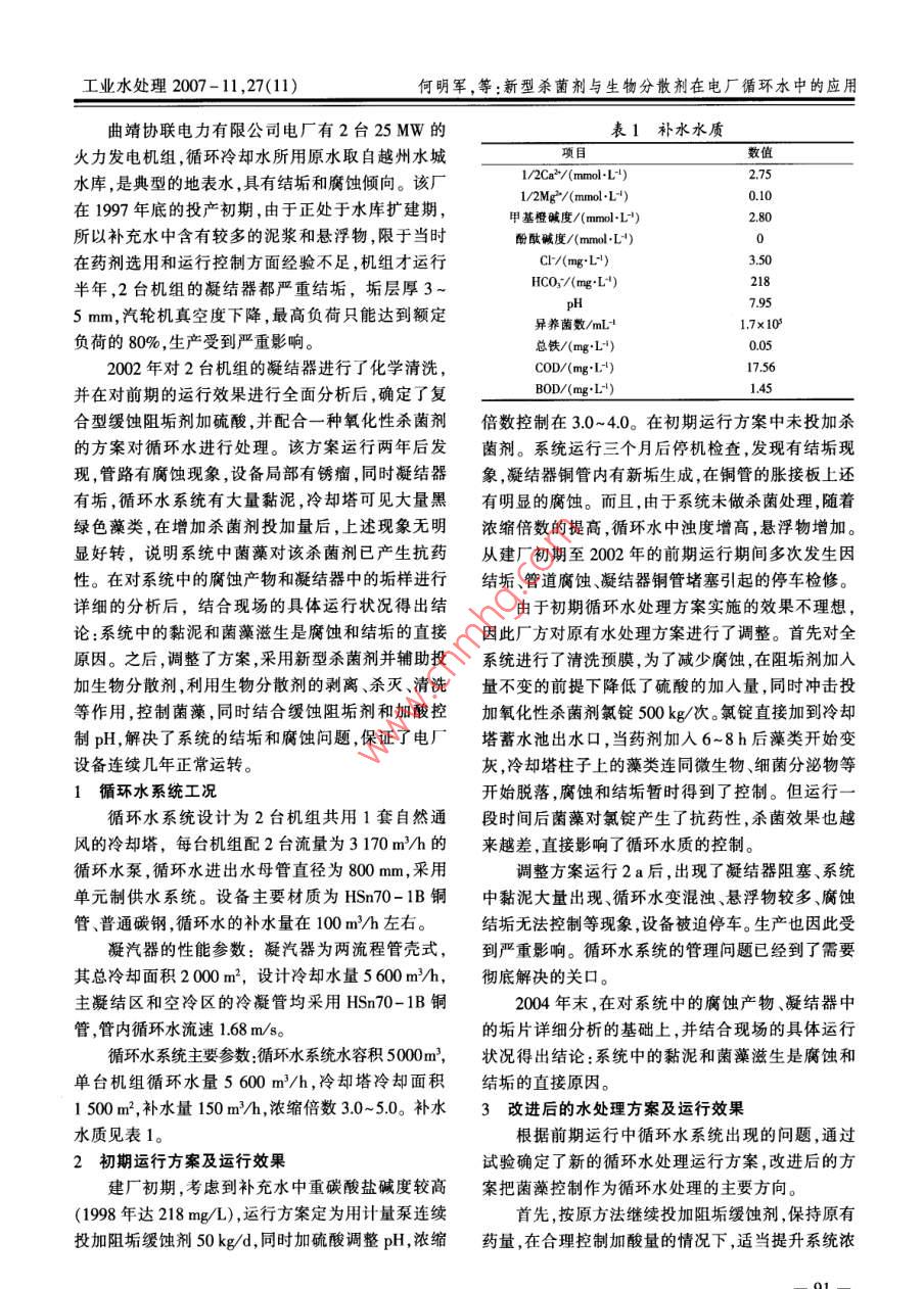 新型殺菌劑與生物分散劑在電廠循環(huán)水中的應(yīng)用