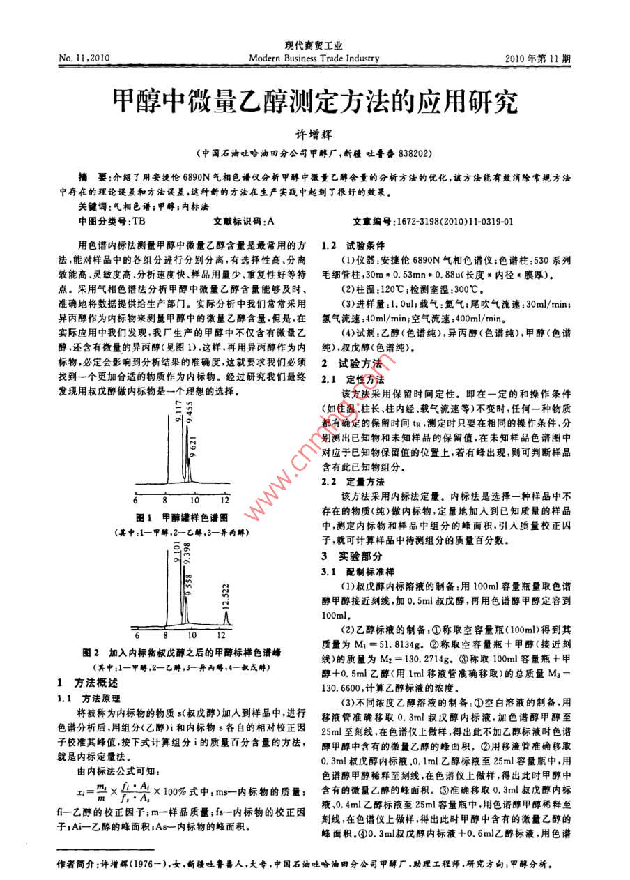 甲醇中微量乙醇測(cè)定方法的應(yīng)用研究