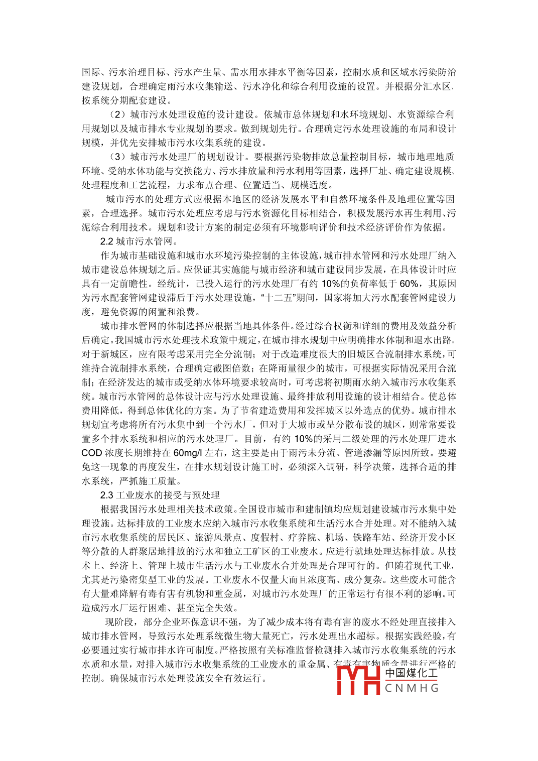 城市污水處理技術(shù)的應(yīng)用探討1、李靖2、佘新1、南京大學(xué)環(huán)境學(xué)院江蘇省2100931、江蘇省冶金設(shè)計(jì)院有限公司江蘇省2100072、江蘇省冶金設(shè)計(jì)院有限公司江蘇省摘要:在城市環(huán)保建設(shè)中,污水污泥的排放,嚴(yán)重影響了建設(shè)環(huán)保、生態(tài)社會的進(jìn)程。因此城市污水污泥的處理已經(jīng)成為人們迫切需要解決的問題。本文結(jié)合多年的實(shí)踐經(jīng)驗(yàn),對城市污水處理及調(diào)試進(jìn)行了分析。關(guān)鍵詞:城市污水處理技術(shù);技術(shù)的要素;中圖分類號:U664.9文獻(xiàn)標(biāo)識碼: A由于污水處理是--項(xiàng)側(cè)重于環(huán)境效益和社會效益的工程,因此在建設(shè)和實(shí)際運(yùn)行過程中常受到資金的限制,使得治理技術(shù)與資金問題成為我國水污染治理的“瓶頸”。目前在城市生活污水處理研究和應(yīng)用領(lǐng)域,普遍采用傳統(tǒng)的活性污泥法,往往基建費(fèi)、運(yùn)行費(fèi)高,能耗大,管理復(fù)雜,易出現(xiàn)污泥膨脹現(xiàn)象;設(shè)備不能滿足高效低耗的要求。近年來為了加快我國可持續(xù)發(fā)展戰(zhàn)略目標(biāo)的實(shí)施、促進(jìn)我國水資源優(yōu)化、保護(hù)環(huán)境,我國很多城市已經(jīng)開始了對城市內(nèi)污水流向的治理,減少污水在城市內(nèi)流向?qū)\層地下水的污染。同時大力應(yīng)用新的廢水處理技術(shù),加快污水處理建設(shè),為我國可持續(xù)發(fā)展路線的實(shí)施打下堅(jiān)實(shí)的基礎(chǔ)。一、城市污水處理工藝技術(shù)目前,我國采用較多的污水處理工藝技術(shù)有氧化溝工藝、A/O工藝、A2/0工藝、SBR工藝、AB工藝等。氧化溝工藝具有出水水質(zhì)好、運(yùn)行穩(wěn)定、管理方便等技術(shù)特點(diǎn),但也存在發(fā)生污泥膨脹的概率較高、流速不均的缺點(diǎn),其中應(yīng)用較多的是奧貝爾氧化溝工藝DE型氧化溝和三溝式氧化溝在中高濃度的中小型城市污水處理中也有應(yīng)廂,采用卡羅塞爾氧化溝工藝的城市污水處理廠大部分為外貸項(xiàng)目。A/O和AAO工藝投資運(yùn)行費(fèi)用較底,具有較好的抗沖擊負(fù)荷的能力,運(yùn)行簡單,處理效率較高,發(fā)生污泥膨脹的概率低,在大中型污水處理中應(yīng)用的較多。AB法污水處理工藝由于其具有抗沖擊負(fù)荷能力強(qiáng),主要應(yīng)用于污水濃度高,水質(zhì)水量變化較大,特別是工業(yè)污水所占比例較高的城市污水處理廠。SBR工藝及其改良型工藝工藝流程簡單、造價低、處理效果好、運(yùn)行穩(wěn)定、耐沖擊負(fù)荷,但對自控設(shè)備要求高,多種類型的SBR工藝如ICES工藝、CAST工藝、UNITNK工藝等都有在我國的實(shí)際應(yīng)用。在場地受到限制或土地成本太高的地方,MBR工藝是不錯的選擇,該工藝BOD負(fù)荷高,處理效率高,處理效果穩(wěn)定,但投資和運(yùn)行費(fèi)用高。“十二五”期間,我國的污水處理能力和要求進(jìn)一步提高,更加重視管網(wǎng)收集系統(tǒng)的建設(shè)和氮、磷營養(yǎng)物質(zhì)的去除,再生水資源的合理利用受到相當(dāng)?shù)年P(guān)注,對污泥處理處置要達(dá)到減量化、穩(wěn)定化、無害化、資源化,污泥厭氧消化、好氧發(fā)酵、熱干化、石灰穩(wěn)定等技術(shù)都在--定范圍內(nèi)得以實(shí)施,但目前污泥填埋還是最主要的污泥處置方式,污泥焚燒、土地利用、建材利用實(shí)際應(yīng)用案例較少。二、城市污水處理的關(guān)鍵要素2.1城市污水處理系統(tǒng)的構(gòu)建。城市污水處理系統(tǒng)的建設(shè)具有明確的目標(biāo)。主要包括水源保護(hù)國際、水環(huán)境質(zhì)量控制目標(biāo)和污水綜合利用目標(biāo)3個方面:(1)城市排水及其污水處理的規(guī)劃。應(yīng)根據(jù)城市水域及接納水休功能區(qū)的更書和水環(huán)境容量。體現(xiàn)排漬、減污、分流、凈化、再用功能的協(xié)調(diào)發(fā)中國煤化工二水質(zhì)YHCNMH G .國際、污水治理目標(biāo)、污水產(chǎn)生量、需水用水排水平衡等因素,控制水質(zhì)和區(qū)域水污染防治建設(shè)規(guī)劃,合理確定雨污水收集輸送、污水凈化和綜合利用設(shè)施的設(shè)置。并根據(jù)分匯水區(qū)、按系統(tǒng)分期配套建設(shè)。(2)城市污水處理設(shè)施的設(shè)計(jì)建設(shè)。依城市總體規(guī)劃和水環(huán)境規(guī)劃、水資源綜合利用規(guī)劃以及城市排水專業(yè)規(guī)劃的要求。做到規(guī)劃先行。合理確定污水處理設(shè)施的布局和設(shè)計(jì)規(guī)模,并優(yōu)先安排城市污水收集系統(tǒng)的建設(shè)。(3)城市污水處理廠的規(guī)劃設(shè)計(jì)。要根據(jù)污染物排放總量控制目標(biāo),城市地理地質(zhì)環(huán)境、受納水體功能與交換能力、污水排放量和污水利用等因素,選擇廠址、確定建設(shè)規(guī)模、處理程度和工藝流程,力求布點(diǎn)合理、位置適當(dāng)、規(guī)模適度。城市污水的處理方式應(yīng)根據(jù)本地區(qū)的經(jīng)濟(jì)發(fā)展水平和自然環(huán)境條件及地理位置等因素,合理選擇。城市污水處理應(yīng)考慮與污水資源化目標(biāo)相結(jié)合,積極發(fā)展污水再生利用、污泥綜合利用技術(shù)。規(guī)劃和設(shè)計(jì)方案的制定必須有環(huán)境影響