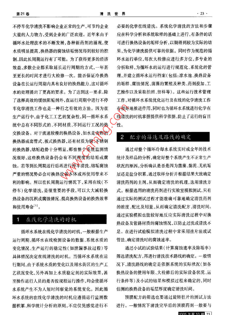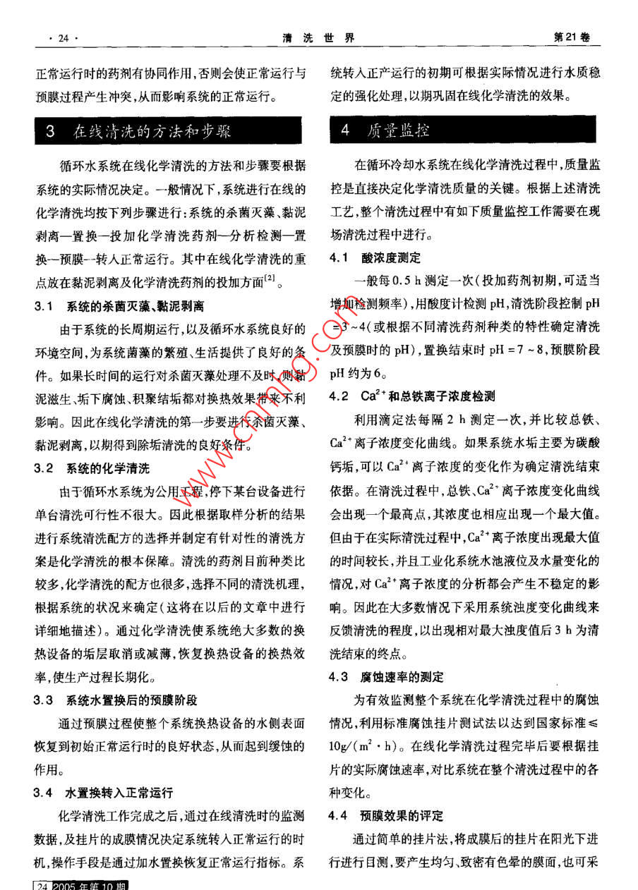 循環(huán)水系統(tǒng)的在線化學(xué)清洗