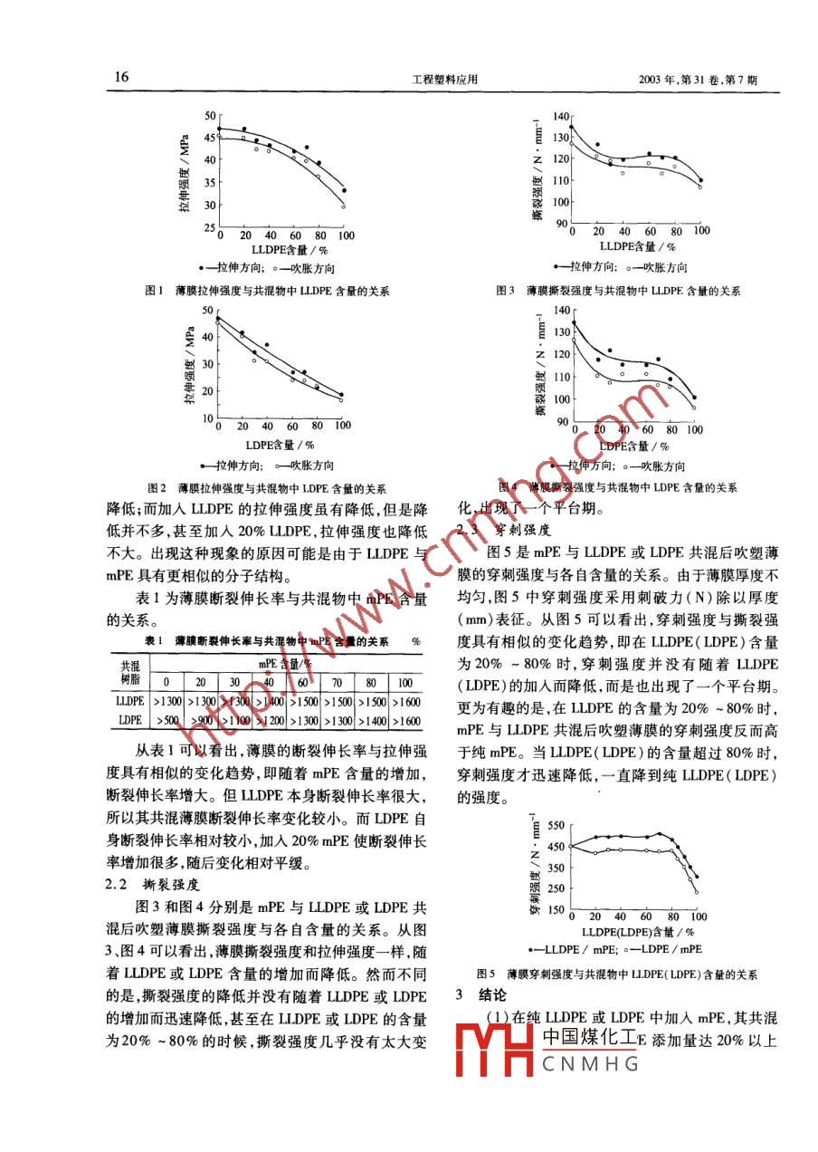 茂金屬聚乙烯與普通聚乙烯共混研究