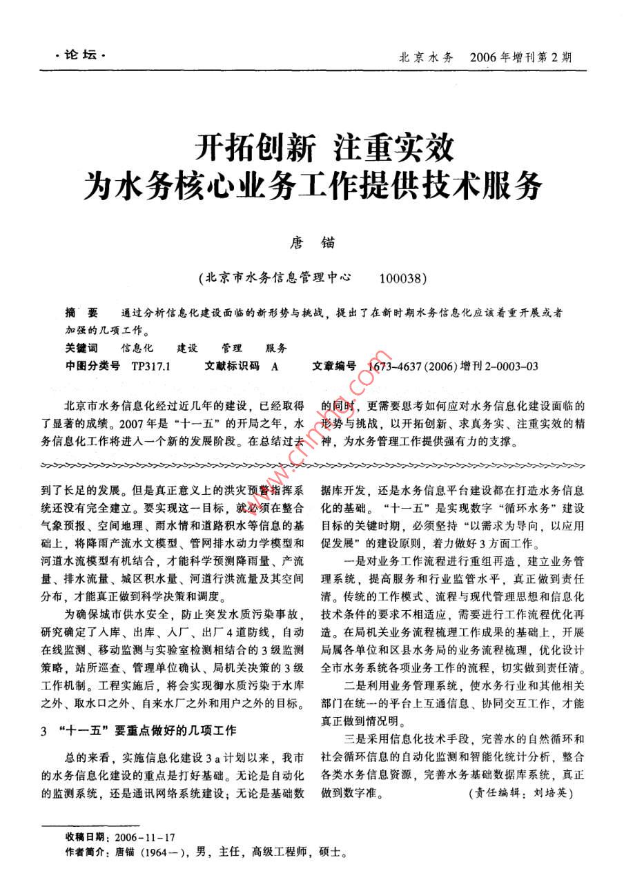 - 作者單位:北京市水務(wù)局科技教育處