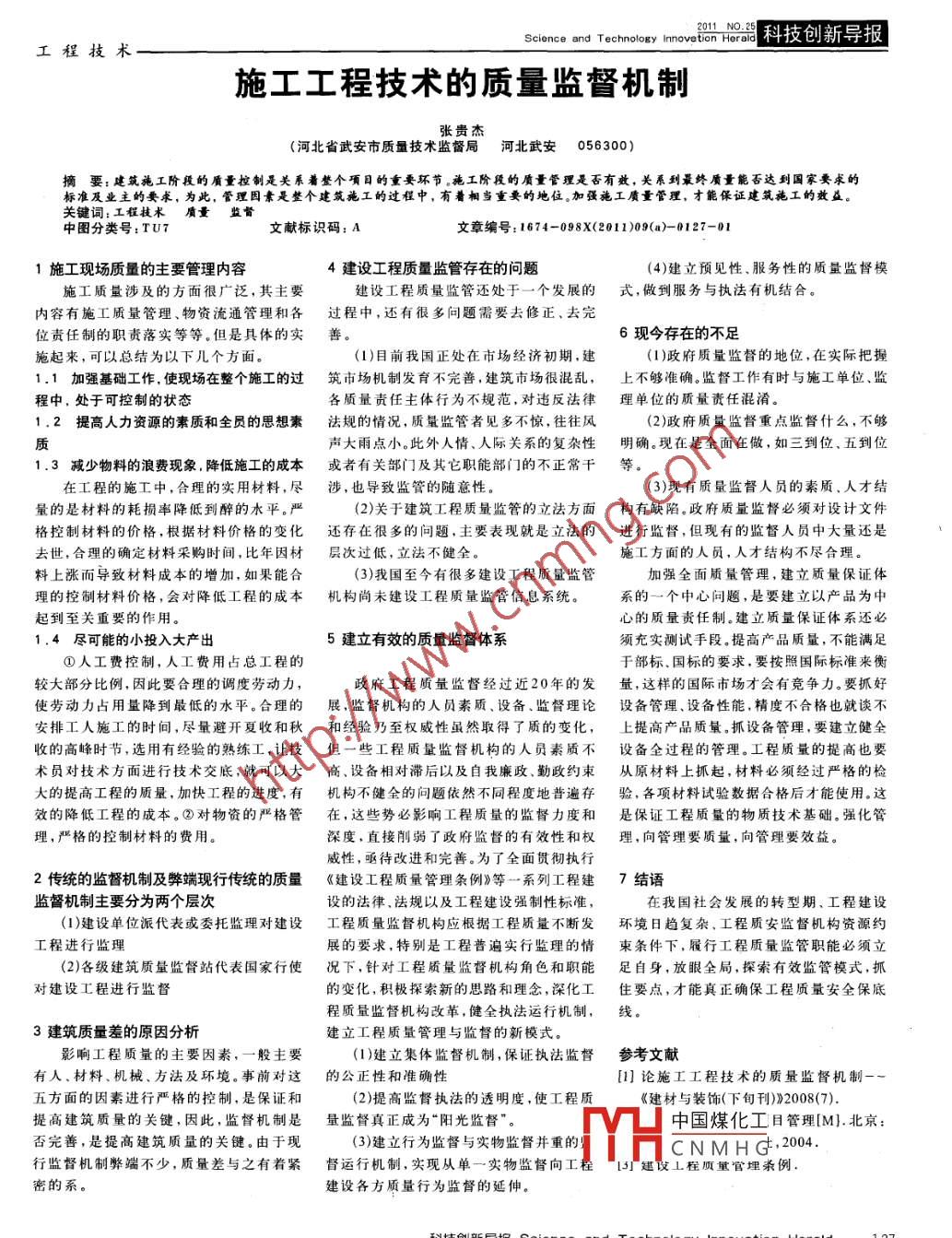 2011 NO.2| 科技創(chuàng)新導報Science and Technology innovetion Herald工程技術施工工程技術的質量監(jiān)督機制張貴杰(河北省武安市質量技術監(jiān)督局河北武安 056300)摘要:建筑施工階段的質量控制是關系著整個項目的重要環(huán)節(jié)。施工階段的質量管理是否有效,關系到最終質量能否達到國家要求的.標準及業(yè)主的要求,為此,管理因素是整個建筑施工的過程中,有著相當重要的地位。加強施工質量管理,才能保證建筑施工的效益。關鍵詞:工程技術質量’監(jiān)督中圖分類號:TU7文獻標識碼: A文章編號:1674-098X(2011)09(a)- 0127-011施工現場質量的主要管理內容4建設工程質量監(jiān)管存在的問題(4)建立預見性.服務性的質量監(jiān)督模施工質量涉及的方面很廣泛,其主要建設工程質量監(jiān)管還處于一個發(fā)展的式,做到服務與執(zhí)法有機結合。內容有施工質量管理、物資流通管理和各過程中,還有很 多問題需要去修正、去完.位責任制的職責落實等等。但是具體的實6現今存在的不足施起來,可以總結為以下幾個方面。(1)目前我國正處在市場經濟初期,建(1)政府質量監(jiān)督的地位,在實際把握1.1 加強基礎工作,使現場在整個施工的過筑市場機制發(fā)育不完善,建筑市場很混亂,上不夠準確。監(jiān)督工作有時與施工單位、監(jiān)程中,處于可控制的狀態(tài)各質量責任主體行為不規(guī)范,對違反法律理單位的質量責任混淆。1.2提高人力資源的素質和全員的思想素法規(guī)的情況,質量監(jiān)管者見多不驚,往往風(2)政府質量監(jiān)督重點監(jiān)督什么,不夠質聲大雨點小。此外人情、人際關系的復雜性明確。現在是全面在做,如三到位.五到位1.3 減少物料的浪費現象. 降低施工的成本或者有關部門及其它職能部門的不正常干等。在工程的施工中,合理的實用材料,盡涉,也導致監(jiān)管的隨意性。(3)現有質量監(jiān)督人員的素質、人才結量的是材料的耗損率降低到醉的水平。嚴(2)關于建筑工程質量監(jiān)管的立法方面構有缺陷 .政府質量監(jiān)督必須對設計文件格控制材料的價格,根據材料價格的變化還存在很多的問題,主要表現就是立法的進行監(jiān)督,但現有的監(jiān)督人員中大量還是去世.合理的確定材料采購時間,比年因材層次過低,立法不健全。施工方面的人員,人才結構不盡合理。料上漲而導致材料成本的增加,如果能合(3)我國至今有很多建設工程質量監(jiān)管加強全面質量管理,建立質量保證體理的控制材料價格,會對降低工程的成本.機構尚未建設工程質量監(jiān)管信息系統(tǒng)。系的一個中心問題,是要建立以產品為中起到至關重要的作用。心的質量責任制。建立質量保證體系還必1.4 盡可能的小投入大產出5建立有效的質量監(jiān)督體系須充實測試手段。提高產品質量,不能滿足①人工費控制,人工費用占總工程的于部標、國標的要求.要按照國際標準來衡較大部分比例,因此要合理的調度勞動力,政府工程質量監(jiān)瞥經過近20年的發(fā)量,這樣的國際市場才會有競爭力。要抓好使勞動力占用量降到最低的水平。合理的.展,監(jiān)督機構的人員素質、設備、監(jiān)督理論設備管理 .設備性能,精度不合格也就談不安排工人施工的時間,盡量避開夏收和秋和經驗乃至權威性雖然取得了質的變化,上提高產品質量。抓設備管理,要建立健全收的高峰時節(jié),選用有經驗的熟練工,讓技但一些工程質量監(jiān)督機構的人員素質不設備全過程的管理。工程質量的提高也要術員對技術方面進行技術交底,就可以大商、設備相對滯后以及自我廉政.勤政約束從原材料.上抓起,材料必須經過嚴格的檢大的提高工程的質量,加快工程的進度,有機構不健全的問題依然不同程度地普遍存驗,各項材料試驗數據合格后才能使用。這效的降低工程的成本。②對物資的阻格管在,這些勢必影響工程質量的監(jiān)督力度和是保證工程質 量的物質技術基礎。強化管理,嚴格的控制材料的費用。深度,直接削弱了政府監(jiān)督的有效性和權理,向管理要質量,向管理要效益。威性,亟待改進和完善。為了全面貫徹執(zhí)行2傳統(tǒng)的監(jiān)督機制及弊端現行傳統(tǒng)的質量《建設工程質量管理條例》等一系列工程建7結語監(jiān)督機制主要分為兩個層次設的法律.法規(guī)以及工程建設強制性標準,在我國社會發(fā)展的轉型期、工程建設.(1)建設單位派代表或委托監(jiān)理對建設工程質量監(jiān)督機構應根據工程質量不斷發(fā)環(huán)境日趨復雜、工程質安監(jiān)督機構資源約工程進行監(jiān)理展的要求,特別是工程普遍實行監(jiān)理的情東條件下,履行工程質量監(jiān)管職能必須立(2)各級建筑質量監(jiān)督站代表國家行使況下,針對工程質量監(jiān)督機構角色和職能足自身,放眼全局,探索有效監(jiān)管模式,抓對建設工程進行監(jiān)督的變化,積極探索新的思路和理念,深化工住要點,才能真正確保工程質量安全保底程質量監(jiān)督機構改革,健全執(zhí)法運行機制,線。3建筑質量羞的原因分析建立工程質量管理與監(jiān)督的新模式。影響工程質量的主要因素,一般主要(1)建立集體監(jiān)督機制,保證執(zhí)法監(jiān)督參考文獻有人、材料、機械、方法及環(huán)境。事前對這.的公正性和準確性[1]論施工工程技術的質量監(jiān)督機