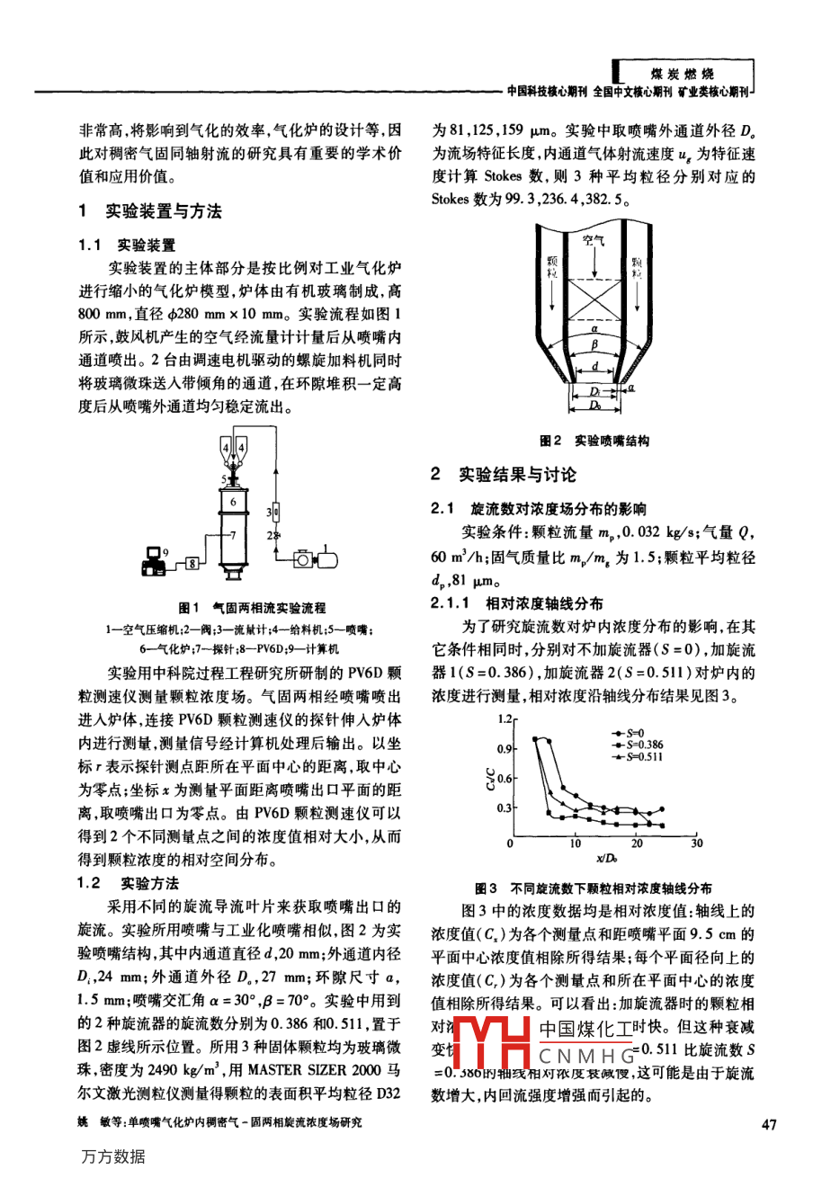 單噴嘴氣化爐內(nèi)稠密氣-固兩相旋流濃度場研究