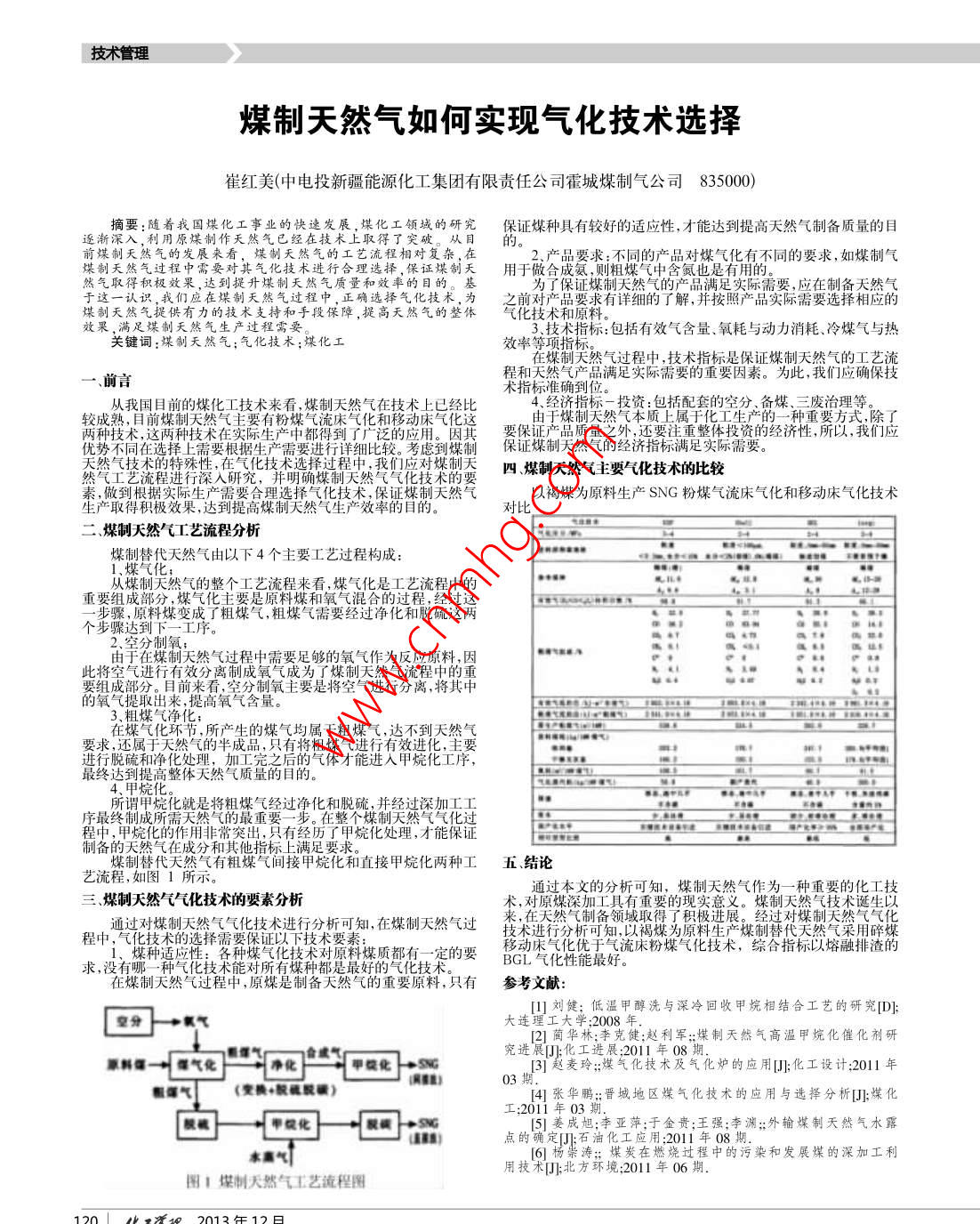 技術(shù)管理煤制天然氣如何實現(xiàn)氣化技術(shù)選擇崔紅美(中電投新疆能源化工集團有限責任公司霍城煤制氣公司835000)摘要:隨著我國煤化工事業(yè)的快速發(fā)展,煤化工領域的研究保證煤種具 有較好的適應性,才能達到提高天然氣制備質(zhì)量的目逐漸深入,利用原煤制作天然氣已經(jīng)在技術(shù)上取得了突破。從目的前煤制天然氣的發(fā)展來看,煤制天然氣的工藝流程相對復雜,在2.產(chǎn)品要求:不同的產(chǎn)品對煤氣化有不同的要求,如煤制氣煤制天然氣過程中需要對其氣化技術(shù)進行合理選擇,保證煤制天用于做 合成氨,則粗煤氣中含氮也是有用的。然氣取得積極效果。達到提升煤制天然氣質(zhì)量和效率的目的。,為了保證煤制天然氣的產(chǎn)品滿足實際需要:應在制備天然氣煤制天然氣提供有力的技術(shù)支持和手段保障。提高天然氣的整體之前對產(chǎn)品要求有詳細的了解,并按照產(chǎn)品實際需要選擇相應的3.技 術(shù)指標:包括有效氣含量:氧耗與動力消耗、冷煤氣與熱關(guān)鍵詞:煤制天然氣;氣化技術(shù);煤化工數(shù)率等項指精在煤制天然氣過程中 ,技術(shù)指標是保證煤制天然氣的工藝流程和天然氣產(chǎn)品滿足實際需要的重要因素。為此,我們應確保技--前言術(shù)指標準確到位從我國目前的煤化工技術(shù)來看,煤制天然氣在技術(shù)上已經(jīng)比4、經(jīng)濟指標-投資:包括配套的空分: 備煤、三廢治理等。由于煤制天然氣本質(zhì)上屬于化工生產(chǎn)的一種重要方式,除了兩種技術(shù),這兩種技術(shù)在實際生產(chǎn)中都得到了廣泛的應用。因其要保證產(chǎn)品 質(zhì)量之外:還要注重整體投資的經(jīng)濟性,所以,我們應優(yōu)勢不同在選擇上需要根據(jù)生產(chǎn)需要進行詳細比較??紤]到煤制保證煤制天然 氣的經(jīng)濟指標滿足實際需要。天然氣技術(shù)的特殊性,在氣化技術(shù)選擇過程中我們應對煤制天四 煤制天然氣主要氣化技術(shù)的比較然氣工藝流程進行深入研究,并明確煤制天然氣氣化技術(shù)的要:素,做到根據(jù)實際生產(chǎn)需要合理選擇氣化技術(shù),保證煤制天然氣對比以褐煤為原料生產(chǎn)SNG粉煤氣流床氣化和移動床氣化技術(shù)生產(chǎn)取得積極效果,達到提高煤制關(guān)然氣生產(chǎn)效率的目的。二煤制天然氣工藝流程分析煤制替代天然氣由以下4個主要工藝過程構(gòu)成:從煤制天然氣的整 個工藝流程來看,煤氣化是工藝流程中的重要組成部分煤氣化主要是原料煤和氧氣混合的過程,經(jīng)過這一步驟,原料煤變成了租燥氣,粗煤氣需要經(jīng)過凈化和脫硫這兩個步驟達到下一一工序。由手在煤制天然氣過程中需要足夠的氧氣作為反應原料,因.比將空氣進行有效分離制成氧氣成為了煤制天然氣流程中的重要組成部分。目前來看,空分制氧主要是將空氣進行分離,將其中的氧氣提取出來,提高氧氣含量。3、粗煤氣凈化;在煤氣化環(huán)節(jié),所產(chǎn)生的煤氣均屬于粗煤氣,達不到天然氣要求,還屬于天然氣的半成品,只有將粗煤氣進行)進行脫硫和凈化處理,加工完之后的氣體才能進人甲烷化工序,.最終達到提高整體天然氣質(zhì)量的目的。, 所謂甲烷化就是將粗煤氣經(jīng)過凈化和脫硫,并經(jīng)過深加工工序最終制成所需天然氣的最重要步。在整個煤制天然氣氣化過程中;甲烷化的作用非常突出,只有經(jīng)歷了甲烷化處理,面煤制巷代天然氣有粗煤氣間接甲燒化和直接甲烷化兩種工五 結(jié)論藝流程,如圖1所示。在煤“通過本文的分析可知,煤制天然氣作為一種重要的化工技三煤制天然氣氣化技術(shù)的要素分析術(shù),對原煤深加工具有重要的現(xiàn)實意義。煤制天然氣技術(shù)誕生以分析可知,在煤制天然氣過 來在天然氣制備領域取得了積極進展經(jīng)過對煤制天然氣氣技術(shù)進行分析可知,以褐煤為原料生產(chǎn)程中,氣化技術(shù)的選擇需要保證以下技術(shù)要素、煤種適應性:各種煤氣化技術(shù)對原料煤質(zhì)都有- -定的要移動床氣化優(yōu)于氣流床粉煤氣化技術(shù),綜合指標以熔融排渣的求,沒有哪一種氣化技術(shù)能對所有煤種都是最好的氣化技術(shù)。BGL氣化性能最好。在煤制天然氣過程中,原煤是制備天然氣的重要原料,只有參考文獻:,凹劉健;低溫甲醇洗與深冷回收甲烷相結(jié)合工藝的研究[D]:空分+→氣大連幾正面年徒:趙利軍:煤制天然氣商溫甲院化催化劑研究進展幾:化工進展:2011年08[3]趙麥玲;煤氣化技術(shù)及氣化爐的應用JI;化工設計;2011年聯(lián)鶴■→[理氣化”~化甲化03期。對凱強氣廠(變換+配桃脫模)[4] 張華鵬:晉城地區(qū)煤氣化技術(shù)的應用與選擇分析[J];煤化工;2011年035]姜成旭;李亞萍;于金貴;王強;李淵;;外輸煤制天然氣水露點的確定[川石油化工應用:2011年08期., [6]楊崇濤;;煤炭在燃燒過程中的污染和發(fā)展煤的深加工利水嘉氣↑用技術(shù)]:北方環(huán)境;2011年06期.圖1煤制天然氣工藝流程圖120|2012午178