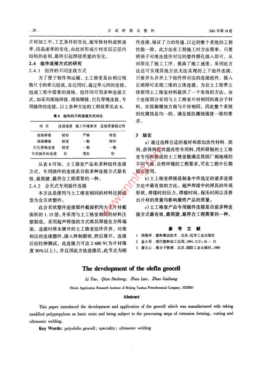 聚烯烴土工格室的研制