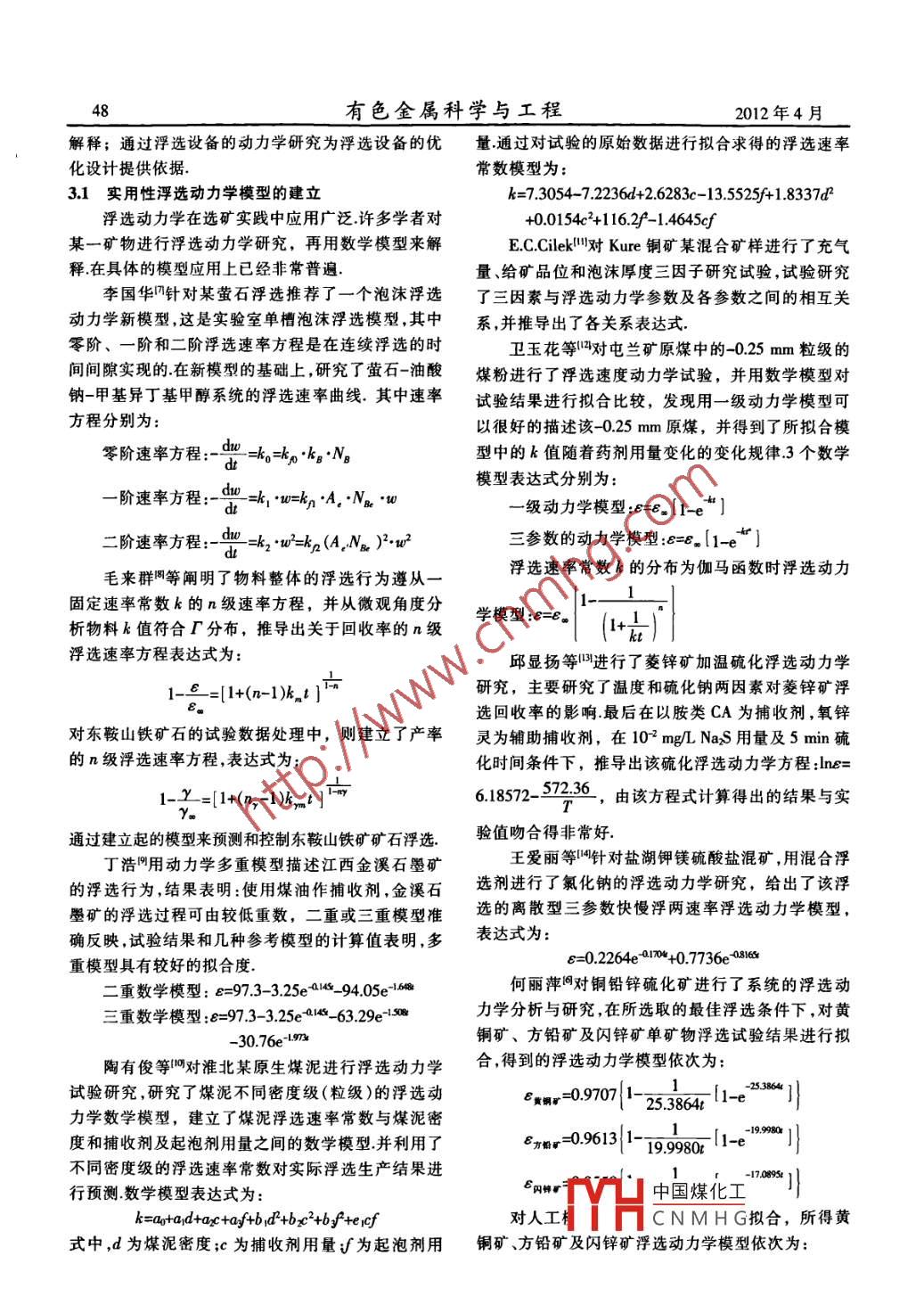 浮選動(dòng)力學(xué)研究進(jìn)展