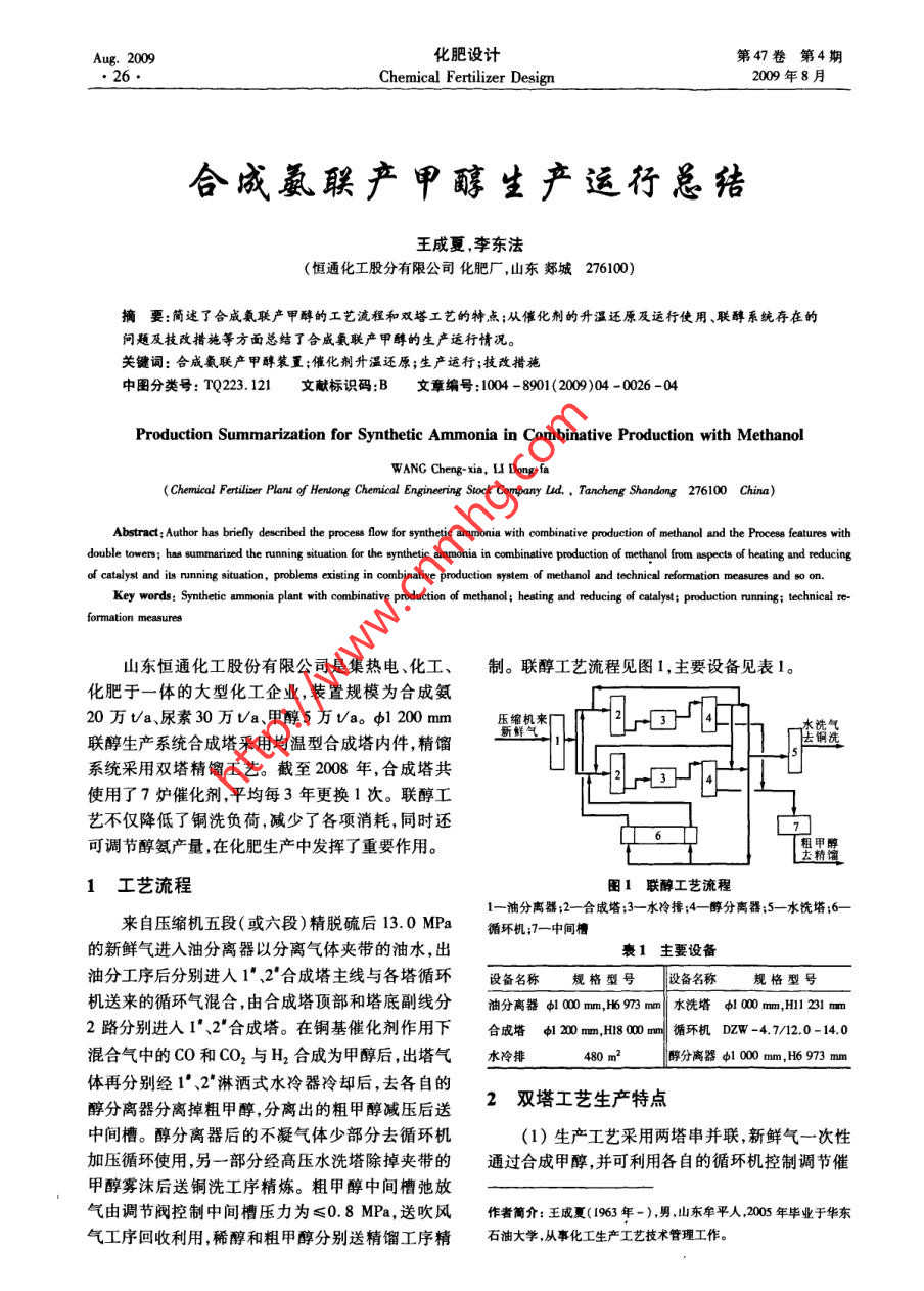 合成氨聯(lián)產(chǎn)甲醇生產(chǎn)運(yùn)行總結(jié)