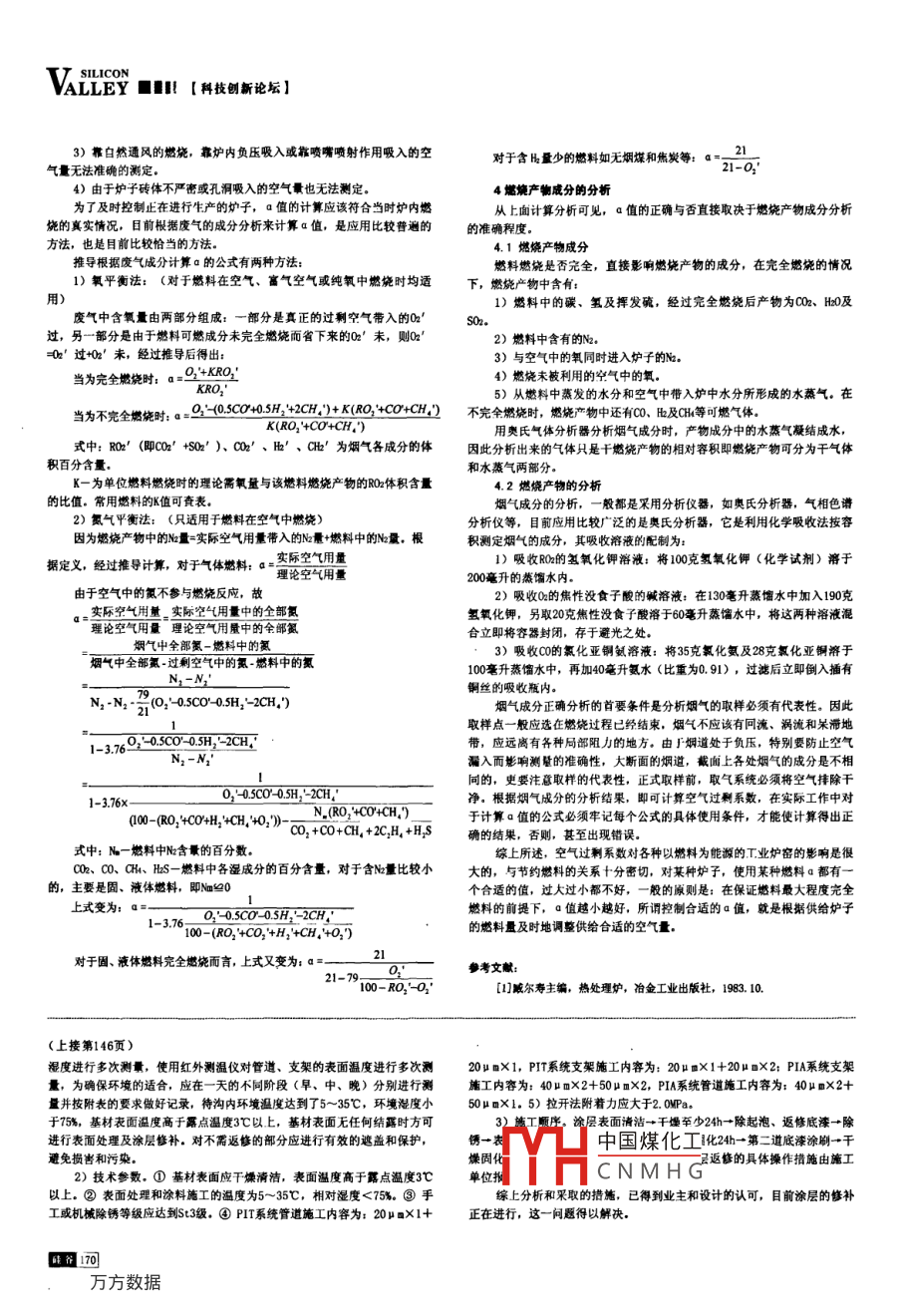 SILIcON【科技創(chuàng)新論壇】語■ALL空氣過剩系數(shù)與節(jié)能劉學(xué)明(河北省遵化市手工業(yè)聯(lián)合社河北遵化064200摘要:通過對空氣過剩系數(shù)的概念、計算方法及與節(jié)能的關(guān)系,從理論與實踐的結(jié)合上加以概述,從而加深對空氣過剩系數(shù)的認(rèn)識,更好地節(jié)約燃料關(guān)鍵詞:空氣《過剩系數(shù):計算方法:節(jié)能中圖分類號:IK-9文獻(xiàn)棟識碼:A文章編號:1671-7597(2010)0620169-02能源是經(jīng)濟(jì)和社會發(fā)展的基礎(chǔ),如何解決經(jīng)濟(jì)發(fā)展與能源供給,是關(guān)不夠,或引風(fēng)機(jī)能力不足,爐內(nèi)氣體不順行,燃燒的不好,惡化了爐內(nèi)的系一個國家、一個民族能否和諧、持續(xù)發(fā)展的關(guān)鍵。改革開放以來,我國熱交換,同樣浪費燃料經(jīng)濟(jì)快速發(fā)展,能源需求不斷增加,特別是近幾年,能源需求更是快速增22對燃燒產(chǎn)物成份的影響長,已成為能源消費大國,對國家能源安全構(gòu)成了嚴(yán)重威脅,形勢十分嚴(yán)當(dāng)空氣過剩系數(shù)增大時,一般情況下是可以使燃料得到更大程度的峻,制約了經(jīng)濟(jì)發(fā)展。因此,在努力加快能源開發(fā)的同時,大力節(jié)約能完全燃燒,即燃燒產(chǎn)物中除去N、Q2外只有RO2、HO,但另一方面,由于源,以較少的能源消耗,創(chuàng)造更多的經(jīng)濟(jì)效益,已成為我國解決能源供需a的增大,№、O2的絕對數(shù)量增加,而使產(chǎn)物中的RO2和H0的含量相對地緊張一項有效的,現(xiàn)實的途徑。目前燃料是我國能源構(gòu)成的攴柱,燃料只減少,從傳熱的觀點來看是很不利的,因為高溫爐勝中的熱交換主要靠輻有經(jīng)過完全燃燒,將化學(xué)能轉(zhuǎn)為熱能,才能被人們加以利用。而燃燒過程射傳熱,而氣體的輻射又靠三原子氣體(如CO0、RO2、H0)和多原子氣體中,空氣過剩系數(shù)的大小對燃料的完全燃燒程度起著十分關(guān)鍵的作用。這(CH4),具有較強的輻射能力和吸收能力[1],當(dāng)產(chǎn)物中的RO、H20含量個問題目前在一些中小企業(yè)還沒有引起足夠的重視,甚至根本沒有認(rèn)識,減少,使氣體的黑度降低,從而使輻射能力減弱,使?fàn)t子的熱效率降低費了大量的燃料,本文通過對空氣過剩系數(shù)的概念、計算力法及與節(jié)能又由于產(chǎn)物中0含量的增加,使?fàn)t內(nèi)的氧化氣氛增強,必然增加金屬的燒的關(guān)系,從理論與實踐的結(jié)合上加以概述,從而加深對空氣過剩系數(shù)的認(rèn)損,又不利于經(jīng)濟(jì)效益的提高識,更好地節(jié)約燃料。2.3對燃料理論燃燒溫度的影響1空氣過剩系微的概念當(dāng)燃料定時,即Q低定,由于a增大,實際燃燒產(chǎn)物生成量也隨我們知道,為了保證燃料能在燃燒室或爐膛中達(dá)到最大程度的完全燃之成比例地增加,則理論燃燒溫度必然降低,爐內(nèi)氣體的輻射傳熱量與氣燒,即燃料中的可燃物完全與氧氣作用,燃燒產(chǎn)物中只有CO2、H0、N2體的輻射溫度的四次方成正比,由于理論燃燒溫度的降低,輻射傳熱量將SOz、O時,實際供給燃燒用的空氣量必須比按化學(xué)方程式計算出來的理論大大的下降,使加熱同樣物料所消耗的燃料量大大增加,甚至由于a的增空氣需要量大一些。此外,由于燃燒室或爐腔的砌體是不夠嚴(yán)密的,又存大,使某些低熱值燃料無法滿足加熱L藝的要求在必要的爐門和孔洞,在爐膛有負(fù)壓存在的情況下,又常吸入部分空各種工業(yè)爐窯由于加熱工藝的要求,往往對燃料的發(fā)熱量也有一個最氣,增加了實際空氣量。我們把燃燒室或爐膛中實際空氣囊與理論空氣的低要求,如加熱爐的Q低一般為1500-1800千卡/公斤,當(dāng)爐子溫度上不來比值,叫做空氣過剩系數(shù)。(用符號a表示),空氣過剩系數(shù)的大小以取時,總是提出增加所用燃料的發(fā)熱量,但必須注意,空氣過剩系數(shù)a影響決于下列三種因素:的嚴(yán)重程度比燃料發(fā)熱量的作用更大些。1)燃料的種類:燃料分固、液、氣體三種,燃料的種類、成份、發(fā)2.4對燃料利用系數(shù)的影響熱值大小都直接影響a,一般來說,固體燃料燃燒時a大,氣體燃料a最所謂燃料利用系數(shù),系指在工業(yè)爐容內(nèi)由于燃料燃燒傳入爐膛內(nèi)的熱小,液體燃料介于兩者中間量和供入燃料所含的熱量之比,它是用來衡量爐內(nèi)燃燒進(jìn)行好壞的一個指2)燃燒設(shè)備的種類:燃料化學(xué)能轉(zhuǎn)變?yōu)闊崮苁峭ㄟ^合理的燃燒設(shè)備來完成的,對固體燃料而言,爐排的型式和結(jié)構(gòu),對液體、氣體燃料而言當(dāng)α大于1時,隨著α的增加,理論燃燒溫度和氣體黑度降低,則使燒嘴的型式和結(jié)構(gòu)都直接影響a值傳遞的有效熱降低,燃料利用系數(shù)下降,與此同時實際燃燒產(chǎn)物生成量3)燃料的燃燒方法:對固體燃料是手燒爐,還是機(jī)燒層燃爐和煤粉也增加,排煙帶走的熱失增加,同樣使燃料利用系數(shù)降低,當(dāng)a小于1爐,是上燃法還是下燃法;對液體、氣體燃料是內(nèi)混還是外混式,是低壓時,a燃料利用系數(shù)下降越小,燃料越不能完全燃燒,則排煙帶走的熱損還是高壓,是有焰蟋燒還是無焰燃燒或者介于二者中間,a值都是不一樣失增加,燃料利用系數(shù)下降的2.5對排煙中熱量損失的影響由此可見,在燃料的燃燒過程中,影響a值的因素是很復(fù)雜的燃燒產(chǎn)