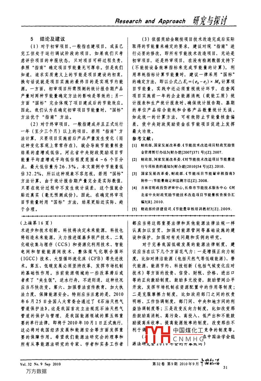 研究與探討 Research and Approach關(guān)于節(jié)能項(xiàng)目節(jié)能量確定方法的探討唐寶坤(長(zhǎng)春市節(jié)能技術(shù)服務(wù)中心,吉林長(zhǎng)春130061)摘要:結(jié)合河北省中央財(cái)政獎(jiǎng)勵(lì)節(jié)能技術(shù)改造項(xiàng)目節(jié)能量核查工作,針對(duì)GB/T132342009《企業(yè)節(jié)能量計(jì)算方法》與《節(jié)能項(xiàng)目節(jié)能量審核指南》中節(jié)能量確定方法存在的差異進(jìn)行對(duì)比分析,探討了適用于初審及終審項(xiàng)目的節(jié)能量確定方法,并提出相關(guān)建議。關(guān)鍵詞:節(jié)能量;國(guó)家標(biāo)準(zhǔn);審核指南中圖分類號(hào):F407.9文獻(xiàn)標(biāo)識(shí)碼:A文章編號(hào):1003-2355(2010)09-0028-04doi:10.3969/jiss1003-235.2010.09.007Abstract: Based on the inspection of energy saved by energy saving technology retrofit project rewardedby the Central finance of Hebei province, and also though focusing on the comparison of different methodsdetermine energy saved between GB/T13234-2009(Methods of Calculating Enterprise's Energy Saving) and