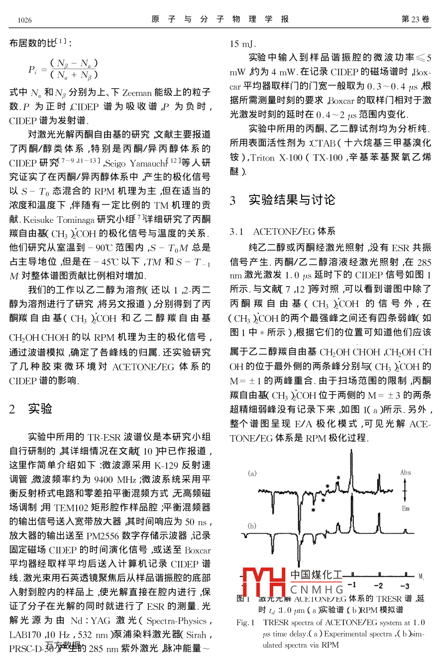 光解丙酮/乙二醇體系的CIDEP實(shí)驗(yàn)研究