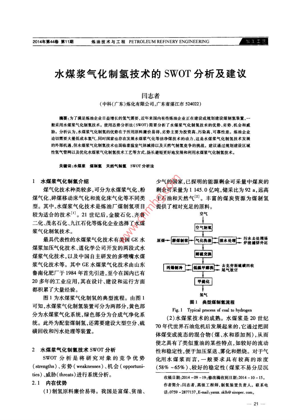 水煤漿氣化制氫技術(shù)的SWOT分析及建議
