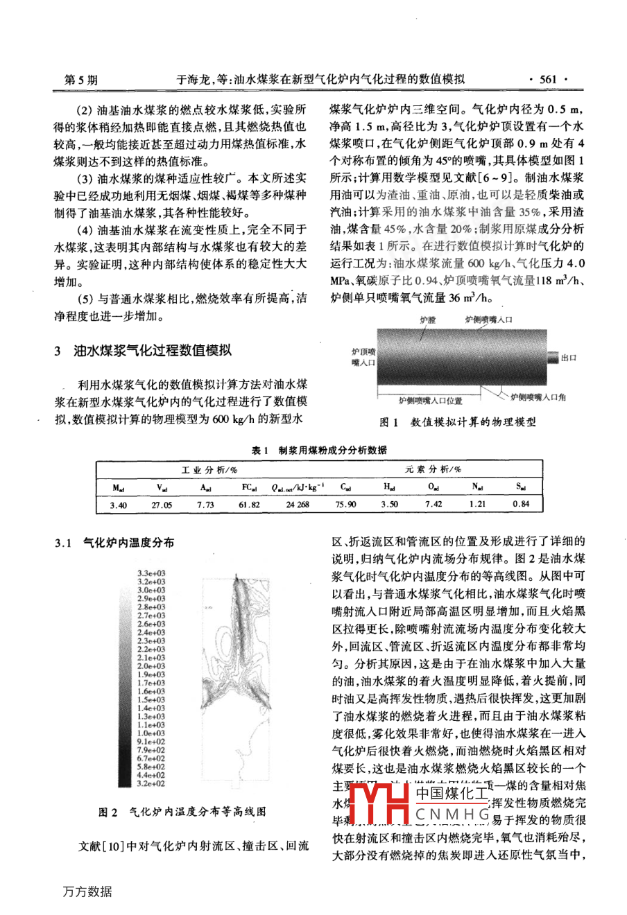 油水煤漿在新型氣化爐內(nèi)氣化過(guò)程的數(shù)值模擬