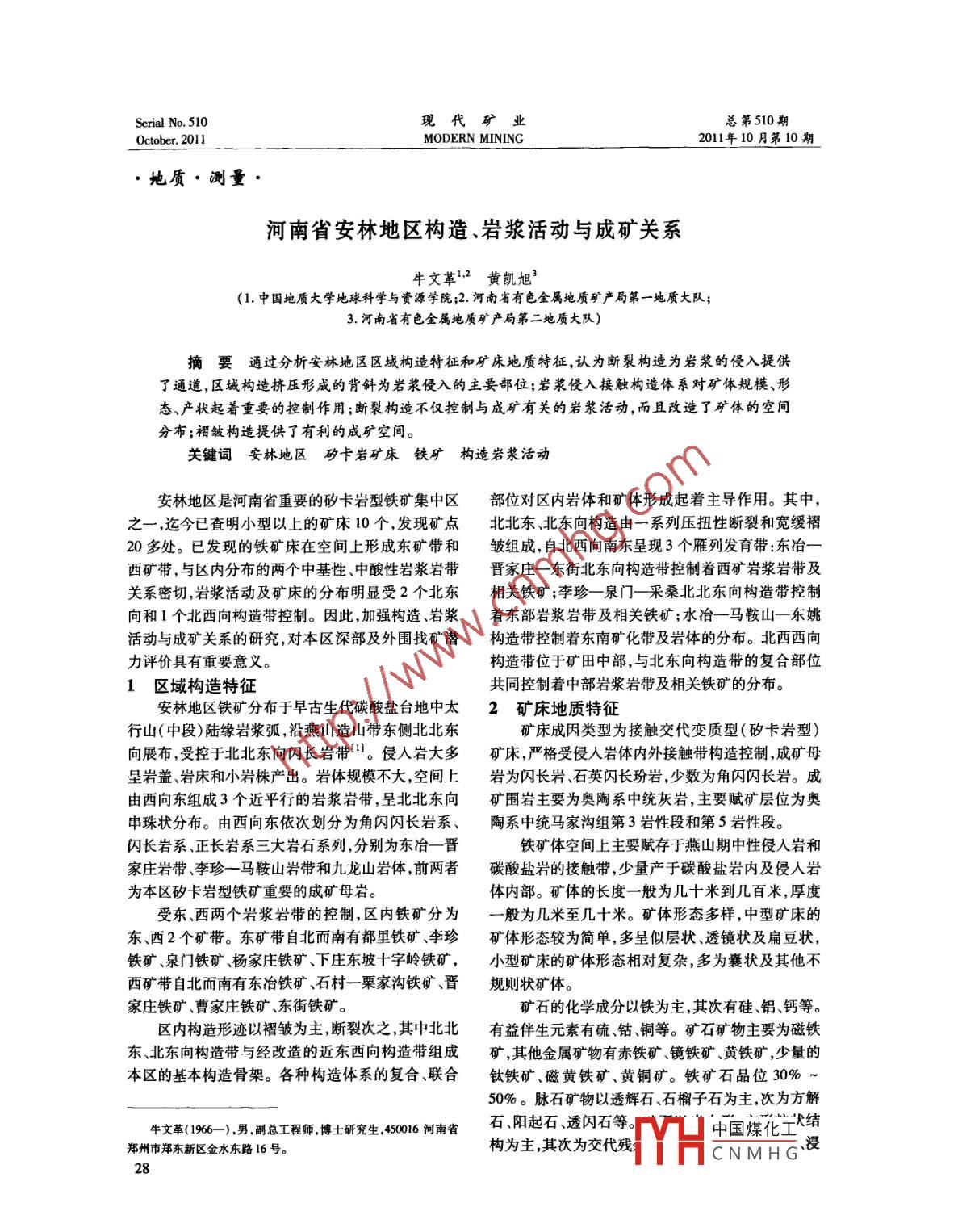 河南省安林地區(qū)構(gòu)造、巖漿活動與成礦關(guān)系 河南省安林地區(qū)構(gòu)造、巖漿活動與成礦關(guān)系