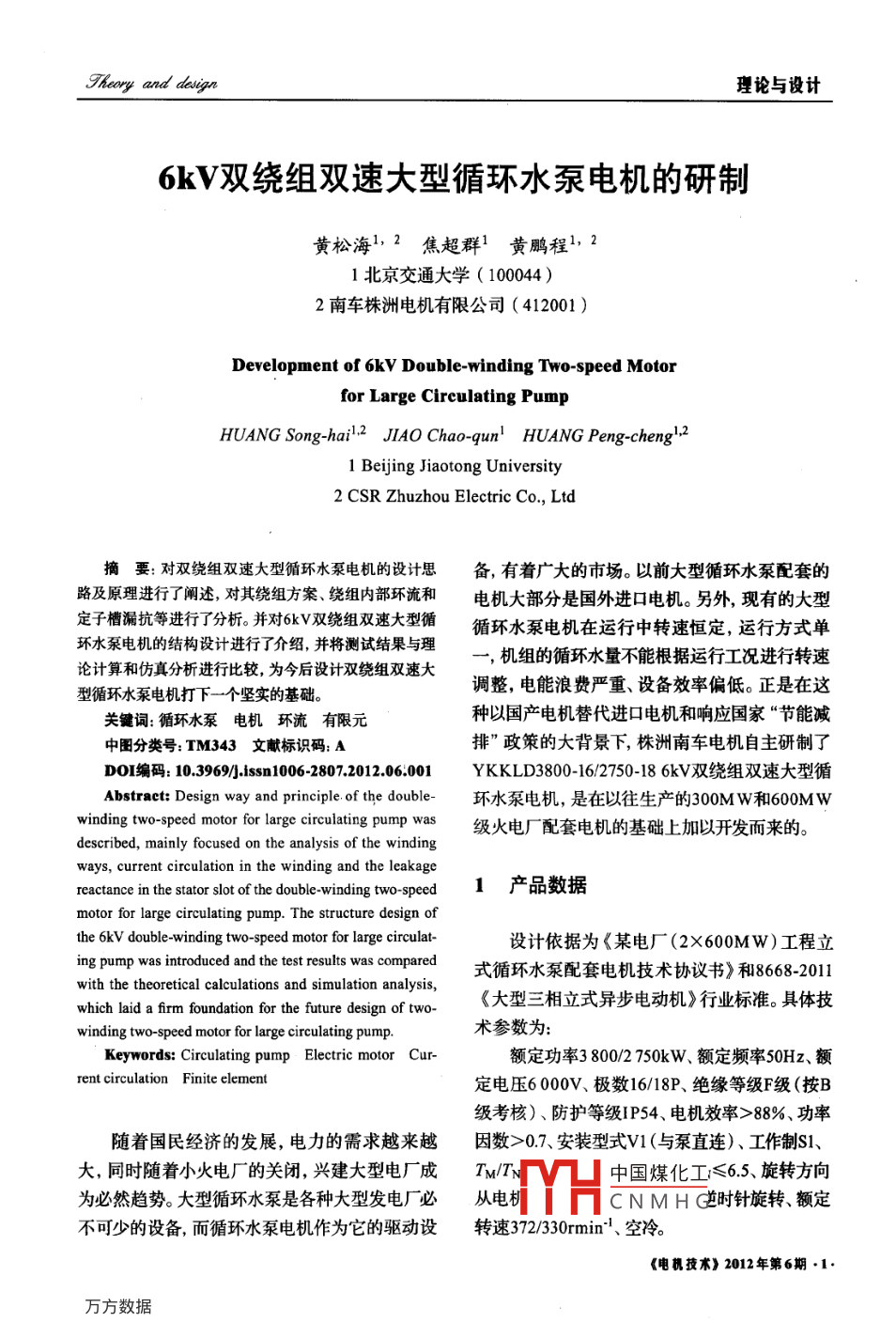 6kV雙繞組雙速大型循環(huán)水泵電機的研制