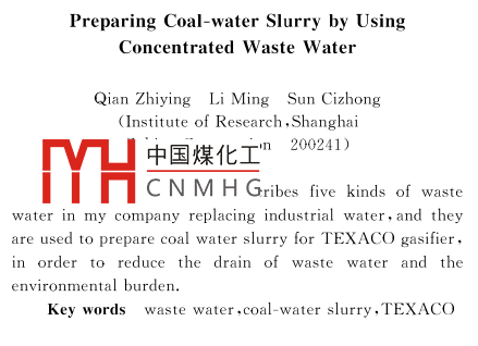 高濃度廢水配制水煤漿