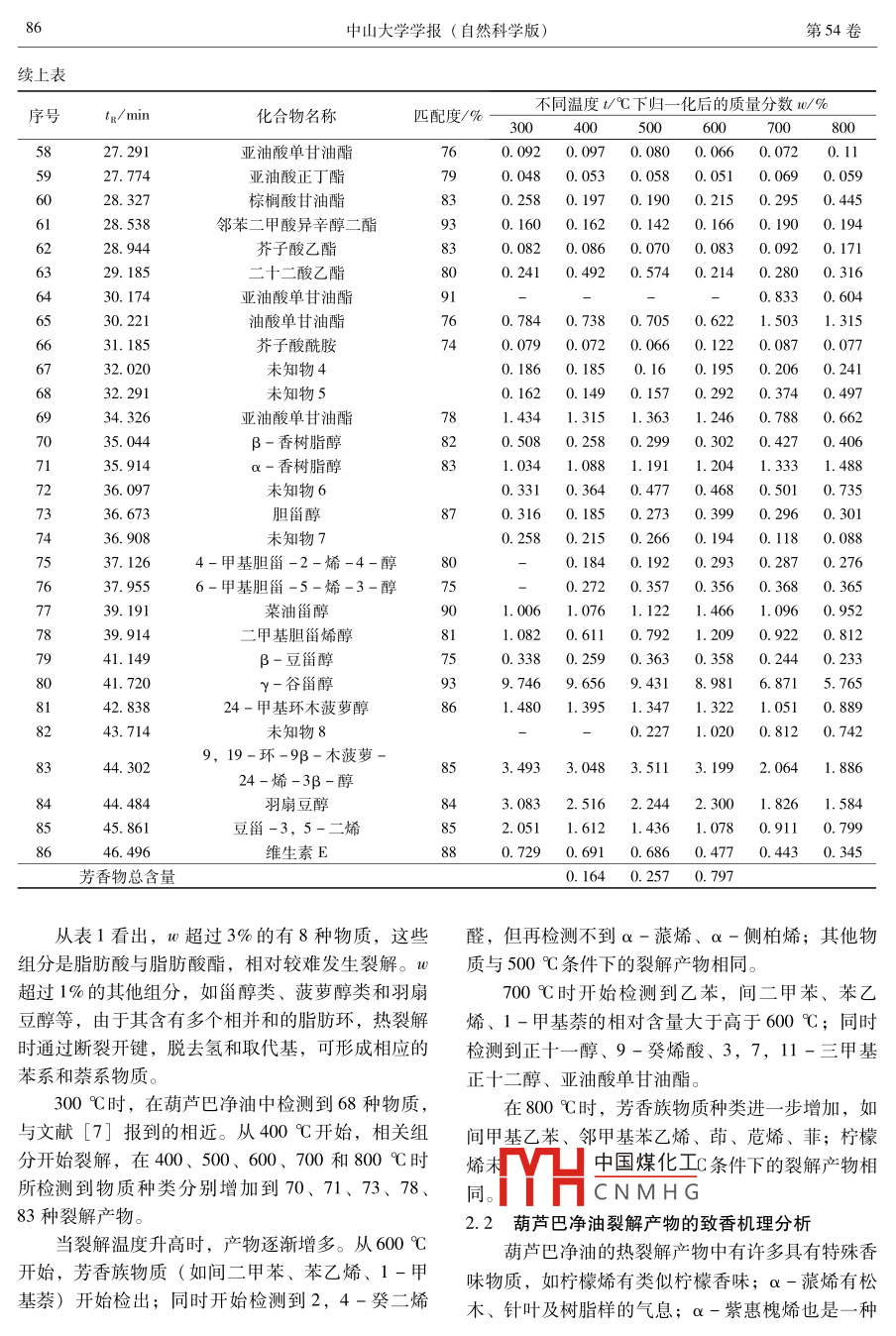 在線熱裂解-氣相色譜/質譜聯(lián)用技術分析葫蘆巴凈油的熱裂解產物