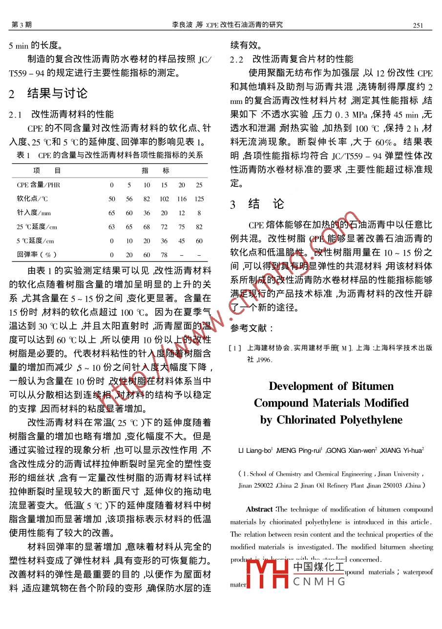CPE改性石油瀝青的研究