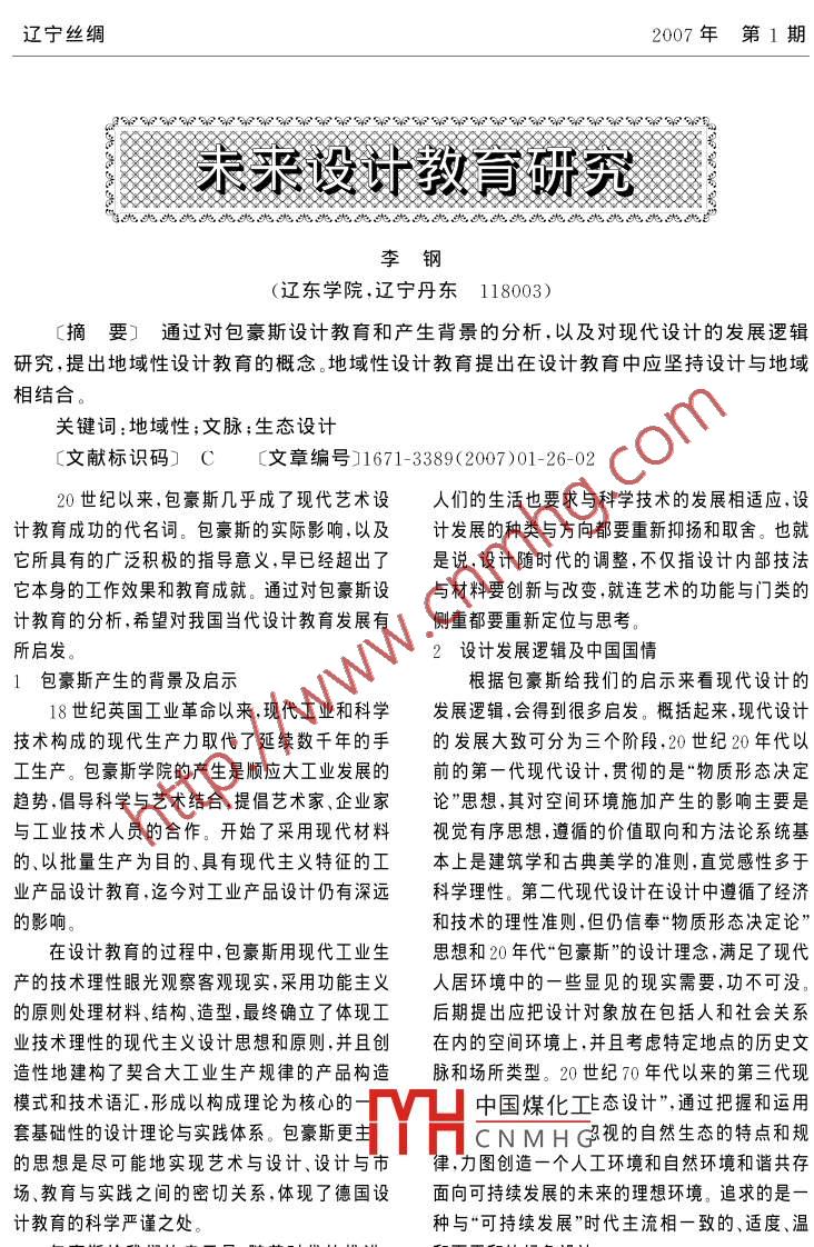 遼寧絲綢2007年第1期未來(lái)設(shè)計(jì)教育研究李鋼(遼東學(xué)院,遼寧丹東.118003)[摘要]通過(guò)對(duì)包豪斯設(shè)計(jì)教育和產(chǎn)生背景的分析,以及對(duì)現(xiàn)代設(shè)計(jì)的發(fā)展邏輯研究,提出地域性設(shè)計(jì)教育的概念。地域性設(shè)計(jì)教育提出在設(shè)計(jì)教育中應(yīng)堅(jiān)持設(shè)計(jì)與地域相結(jié)合。關(guān)鍵詞:地域性;文脈;生態(tài)設(shè)計(jì)(文獻(xiàn)標(biāo)識(shí)碼] C [文 章編號(hào)]1671-3389(2007)01 -26-0220世紀(jì)以來(lái),包豪斯幾乎成了現(xiàn)代藝術(shù)設(shè)人們的生活 也要求與科學(xué)技術(shù)的發(fā)展相適應(yīng),設(shè)計(jì)教育成功的代名詞。包豪斯的實(shí)際影響,以及計(jì)發(fā)展的種類與方向都要重新抑揚(yáng)和取舍。也就它所具有的廣泛積極的指導(dǎo)意義,早已經(jīng)超出了是說(shuō),設(shè)計(jì)隨時(shí)代的調(diào)整,不僅指設(shè)計(jì)內(nèi)部技法它本身的工作效果和教育成就。通過(guò)對(duì)包豪斯設(shè).與材料要?jiǎng)?chuàng)新與改變,就連藝術(shù)的功能與門類的計(jì)教育的分析,希望對(duì)我國(guó)當(dāng)代設(shè)計(jì)教育發(fā)展有.側(cè)重都要重新定位與思考。所啟發(fā)。2設(shè)計(jì)發(fā)展邏輯及中國(guó)國(guó)情1包豪斯產(chǎn)生的背景及啟示根據(jù)包豪斯給我們的啟示來(lái)看現(xiàn)代設(shè)計(jì)的18世紀(jì)英國(guó)工業(yè)革命以來(lái),現(xiàn)代工業(yè)和科學(xué).發(fā)展邏輯,會(huì)得到很多啟發(fā)。概括起來(lái),現(xiàn)代設(shè)計(jì)技術(shù)構(gòu)成的現(xiàn)代生產(chǎn)力取代了延續(xù)數(shù)千年的手的發(fā)展大致可分為三個(gè)階段,20世紀(jì)20年代以工生產(chǎn)。包豪斯學(xué)院的產(chǎn)生是順應(yīng)大工業(yè)發(fā)展的.前的第一代現(xiàn)代設(shè)計(jì),貫徹的是“物質(zhì)形態(tài)決定趨勢(shì),倡導(dǎo)科學(xué)與藝術(shù)結(jié)合,提倡藝術(shù)家、企業(yè)家論”思想,其對(duì)空間環(huán)境施加產(chǎn)生的影響主要是與工業(yè)技術(shù)人員的合作。開始了采用現(xiàn)代材料視覺(jué)有序思想,遵循的價(jià)值取向和方法論系統(tǒng)基的、以批量生產(chǎn)為目的、具有現(xiàn)代主義特征的工本上是建筑學(xué)和古典美學(xué)的準(zhǔn)則,直覺(jué)感性多于業(yè)產(chǎn)品設(shè)計(jì)教育,迄今對(duì)工業(yè)產(chǎn)品設(shè)計(jì)仍有深遠(yuǎn)科學(xué)理性。第二代現(xiàn)代設(shè)計(jì)在設(shè)計(jì)中遵循了經(jīng)濟(jì)的影響。和技術(shù)的理性準(zhǔn)則,但仍信奉“物質(zhì)形態(tài)決定論'在設(shè)計(jì)教育的過(guò)程中,包豪斯用現(xiàn)代工業(yè)生思想和20年代“包豪斯”的設(shè)計(jì)理念,滿足了現(xiàn)代產(chǎn)的技術(shù)理性眼光觀察客觀現(xiàn)實(shí),采用功能主義人 居環(huán)境中的一些顯見的現(xiàn)實(shí)需要,功不可沒(méi)。的原則處理材料、結(jié)構(gòu)、造型,最終確立了體現(xiàn)工后 期提出應(yīng)把設(shè)計(jì)對(duì)象放在包括人和社會(huì)關(guān)系業(yè)技術(shù)理性的現(xiàn)代主義設(shè)計(jì)思想和原則,并且創(chuàng)在內(nèi)的空間環(huán)境上,并且考慮特定地點(diǎn)的歷史文造性地建構(gòu)了契合大工業(yè)生產(chǎn)規(guī)律的產(chǎn)品構(gòu)造脈和場(chǎng)所類型。20世紀(jì)70年代以來(lái)的第三代現(xiàn)模式和技術(shù)語(yǔ)匯,形成以構(gòu)成理論為核心的中國(guó)煤化工態(tài)設(shè)計(jì)”,通過(guò)把握和運(yùn)用套基礎(chǔ)性的設(shè)計(jì)理論與實(shí)踐體系。包豪斯更主MYH.CNMHG&視的自然生態(tài)的特點(diǎn)和規(guī)的思想是盡可能地實(shí)現(xiàn)藝術(shù)與設(shè)計(jì)、設(shè)計(jì)與市律 ,力圖創(chuàng)造一個(gè)人工環(huán)境和自然環(huán)境和諧共存場(chǎng)、教育與實(shí)踐之間的密切關(guān)系,體現(xiàn)了德國(guó)設(shè)面向可持續(xù)發(fā)展的未來(lái)的理想環(huán)境。追求的是-計(jì)教育的科學(xué)嚴(yán)謹(jǐn)之處。種與“可持續(xù)發(fā)展”時(shí)代主流相一致的、適度、溫包豪斯給我們的啟示是,隨著時(shí)代的推進(jìn),和而平和的綠色設(shè)計(jì)。26遼寧絲綢2007年第1期根據(jù)我國(guó)目前的國(guó)情,我國(guó)的現(xiàn)代設(shè)計(jì)正處素,構(gòu)成空間的設(shè)計(jì)可以抄襲,但一定地域的自在第二代現(xiàn)代設(shè)計(jì)的前期。如果我國(guó)的現(xiàn)代設(shè)計(jì)然景觀則是難以模仿的,它具有永恒的魅力。二按照西方現(xiàn)代設(shè)計(jì)的發(fā)展歷程進(jìn)行發(fā)展,我們會(huì)是人地共生的思想,即人與環(huán)境不僅要共生,而永遠(yuǎn)落在西方國(guó)家的后面,所以我國(guó)現(xiàn)代設(shè)計(jì)應(yīng)且要共榮,人與自然必須共同發(fā)展、建設(shè)。該根據(jù)我國(guó)的具體國(guó)情發(fā)展現(xiàn)代設(shè)計(jì),即發(fā)展地.3.4培養(yǎng)學(xué)生 既有動(dòng)手能力,又有理論素養(yǎng)域性設(shè)計(jì),以地域自然條件和人文條件特點(diǎn)為根要改變現(xiàn)在的藝術(shù)設(shè)計(jì)教育只注重理論的.本,把第二代設(shè)計(jì)的后期和第三代現(xiàn)代設(shè)計(jì)(生現(xiàn)狀,要培養(yǎng)學(xué)生